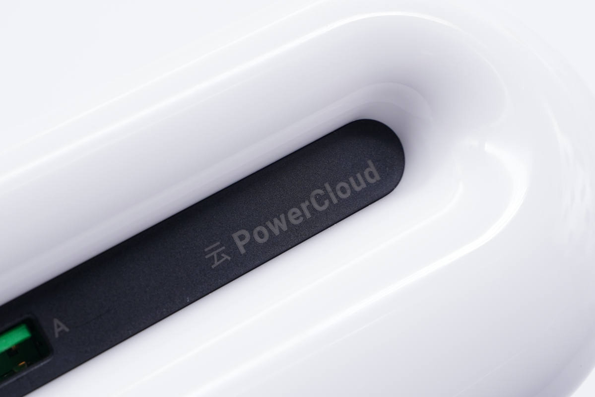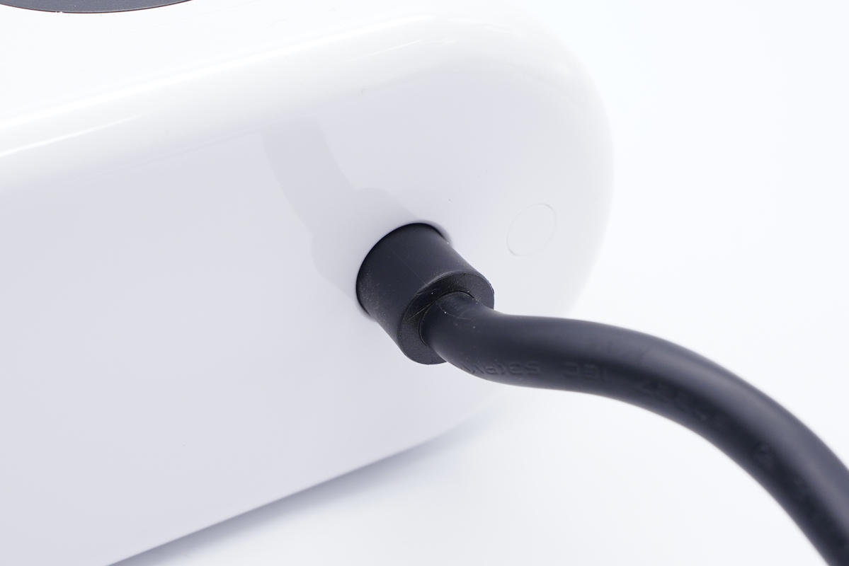 插座機身殼黑白配色,白色外殼表面高光亮面處理,機身前后兩側(cè)均設(shè)計得十分圓潤,觸摸手感好。