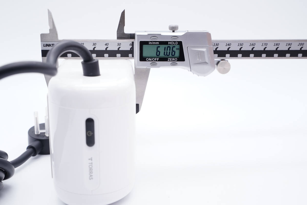右側(cè)設(shè)有黑色電源鍵,旁邊是TORRAS品牌logo。