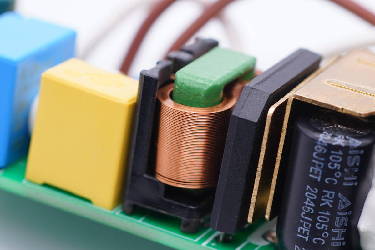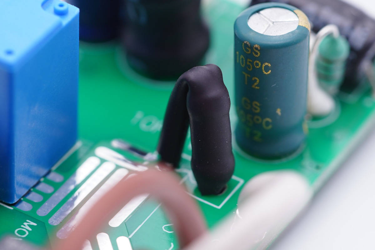 降壓電感多股漆包線繞制,打膠加固,外套絕緣管絕緣。