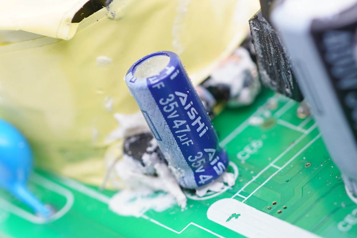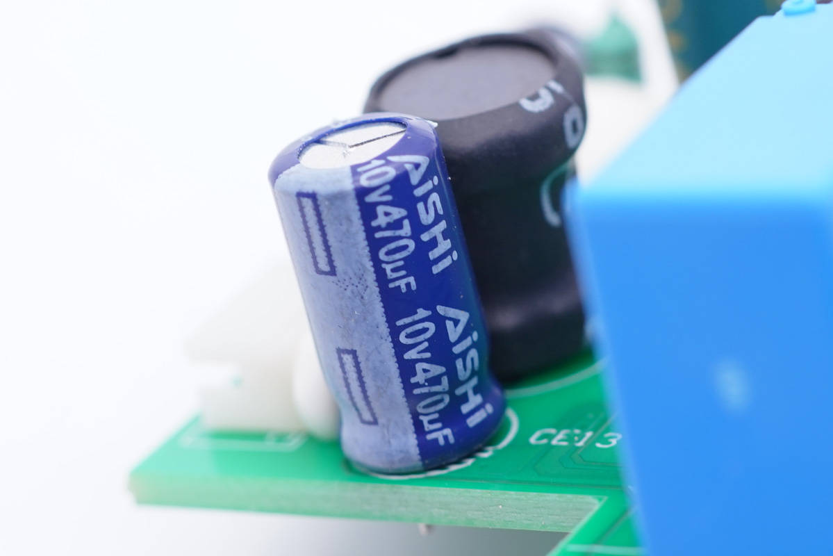 第三顆電容也是來自艾華,規(guī)格為10V 470μF。