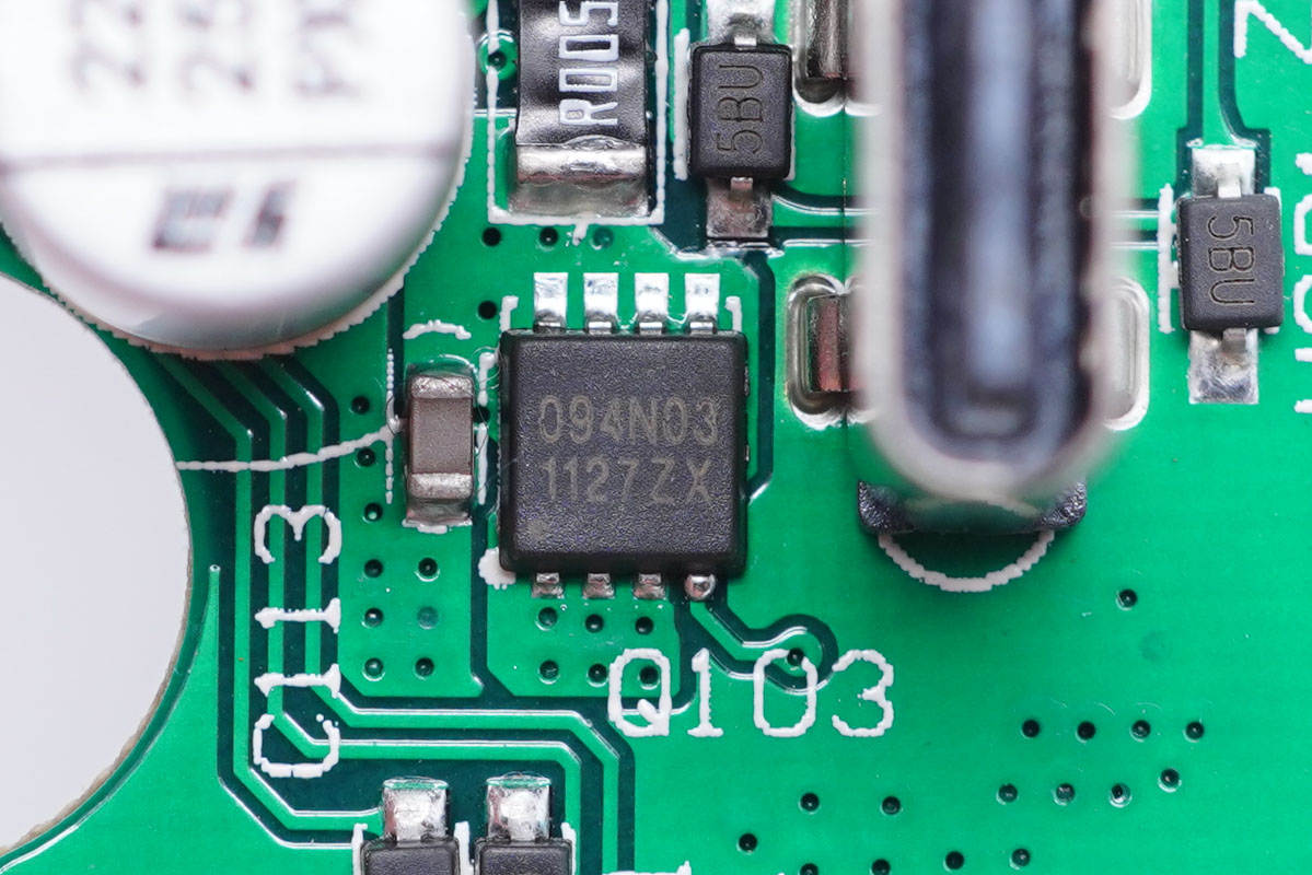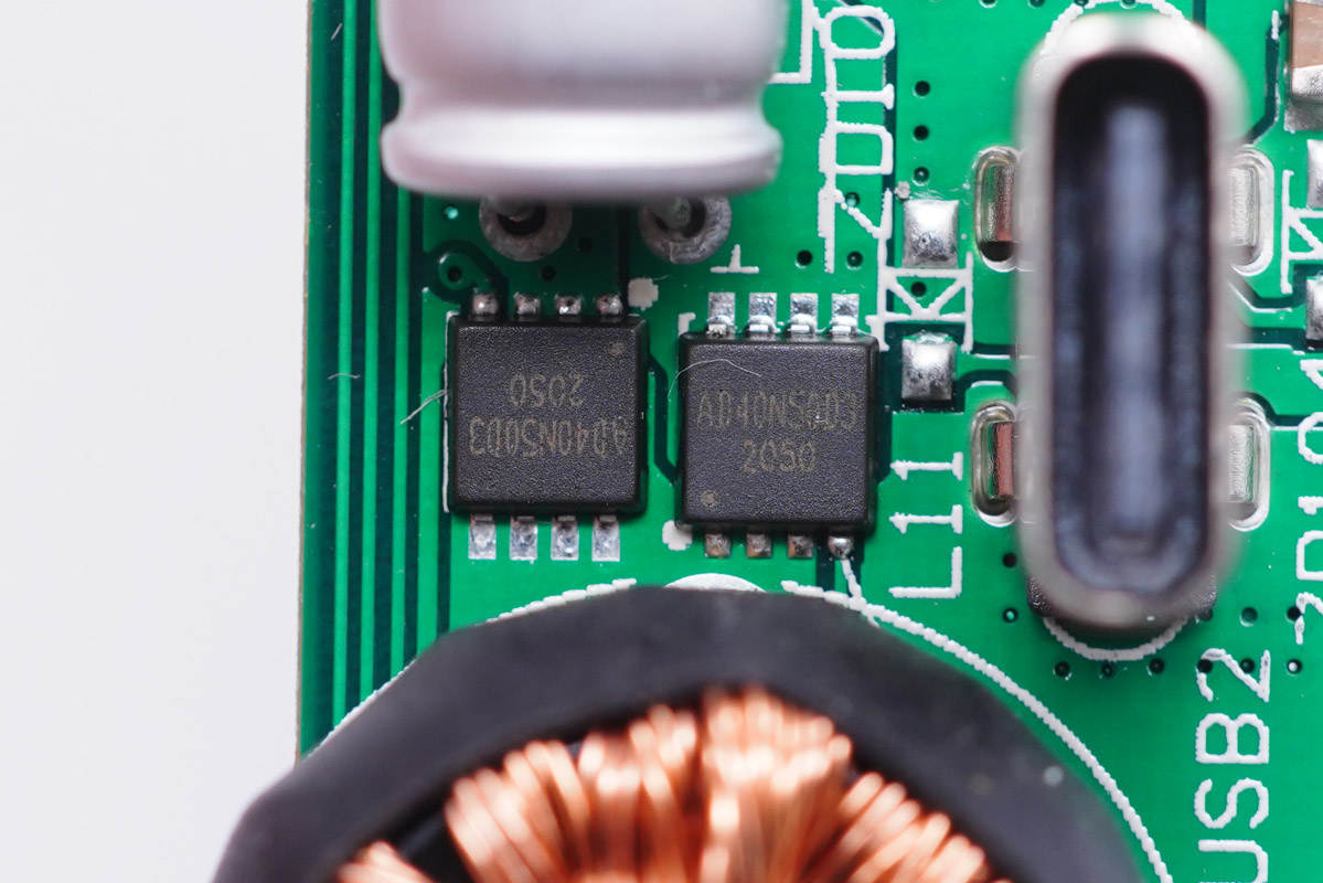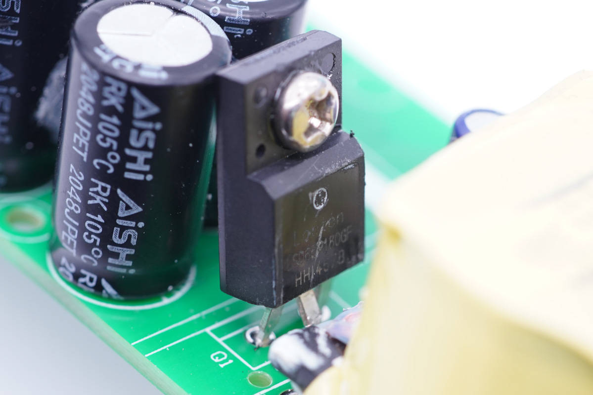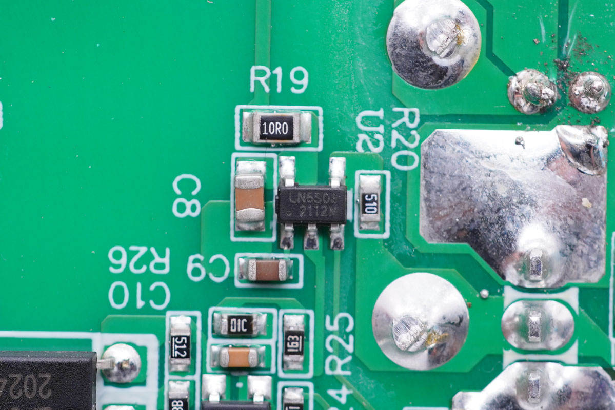 其中開關(guān)電源由通嘉LD5762E1搭配龍騰超結(jié)MOS管,以及力生美同步整流控制器搭配威兆VST012N12MS同步整流管組成,輸出端兩路二次降壓電路采用智融SW3516H和SW3517S方案。初級側(cè)采用四顆艾華電容濾波,次級側(cè)全部采用永銘NPX系列固態(tài)電容濾波,整體的用料十分可靠。