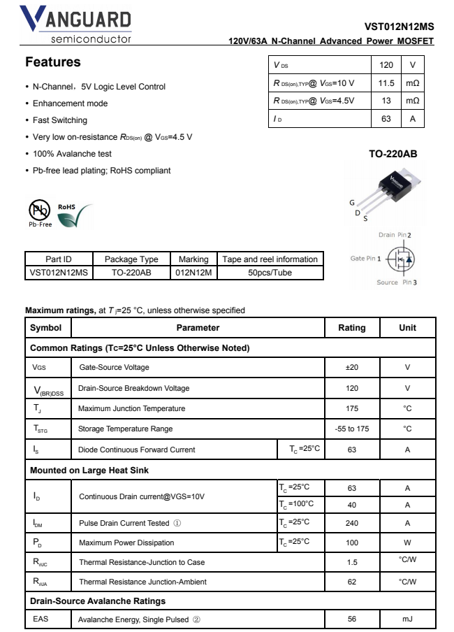 威兆VST012N12MS資料信息。
