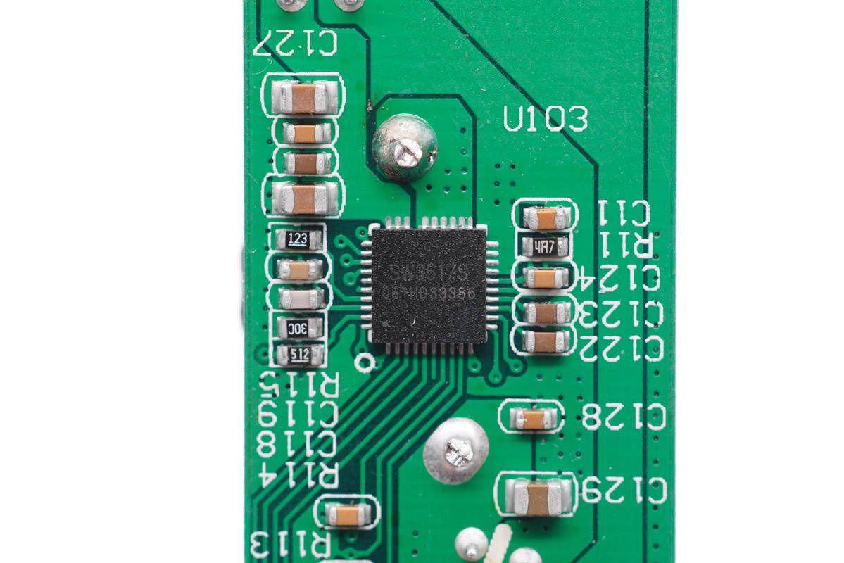采用智融SW3517S作為C2和A口降壓協(xié)議IC。這是一款高集成度的多快充協(xié)議雙口充電芯片,支持A+C口任意口快充輸出,支持雙口獨立限流。其集成了5A高效率同步降壓變換器,支持 PPS、PD、QC、AFC、FCP、SCP、PE、SFCP等多種快充協(xié)議,最大輸出PD 100W(20V5A),CC/CV 模式,以及雙口管理邏輯。外圍只需少量的器件,即可組成完整的高性能多快充協(xié)議雙口充電解決方案。