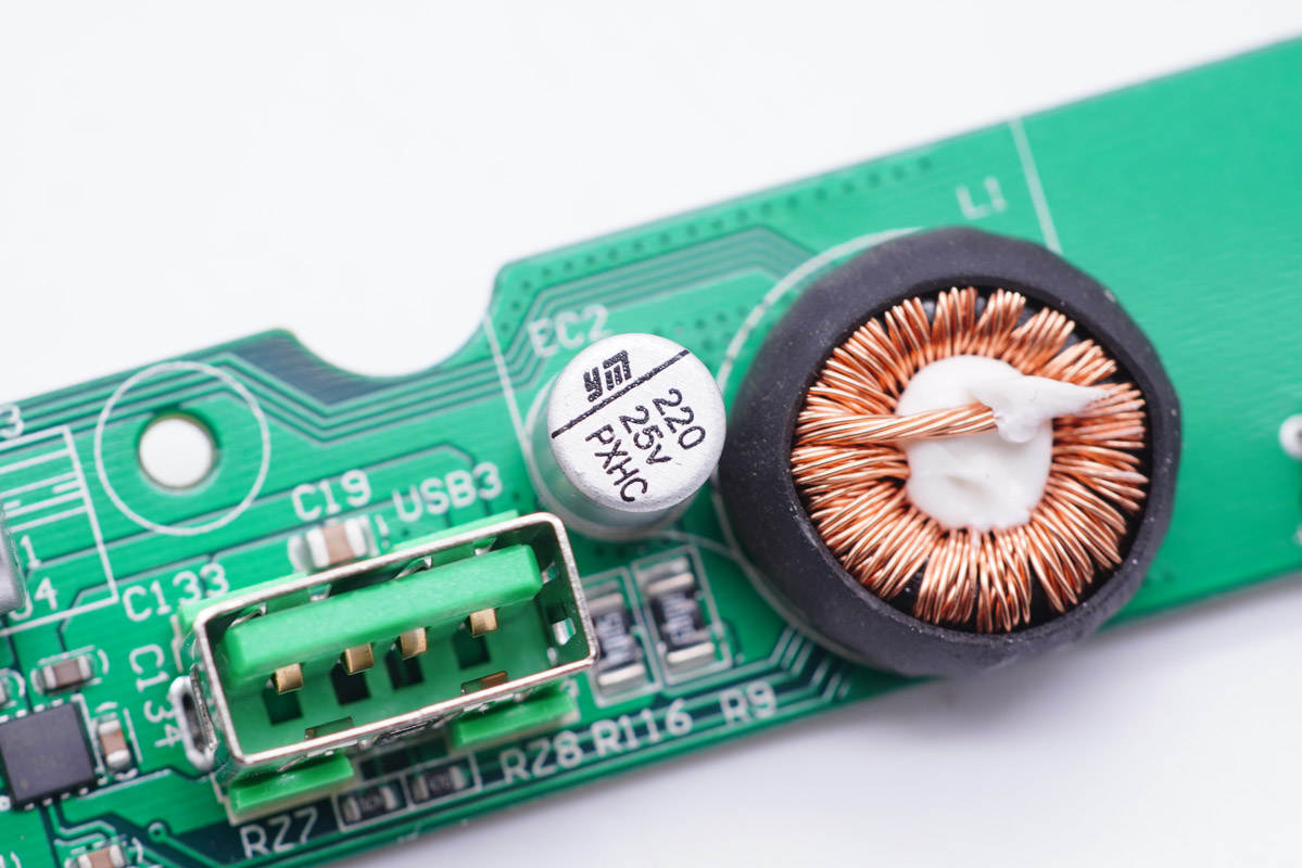 另一顆電容來自艾華,旁邊是一顆色環(huán)電感。