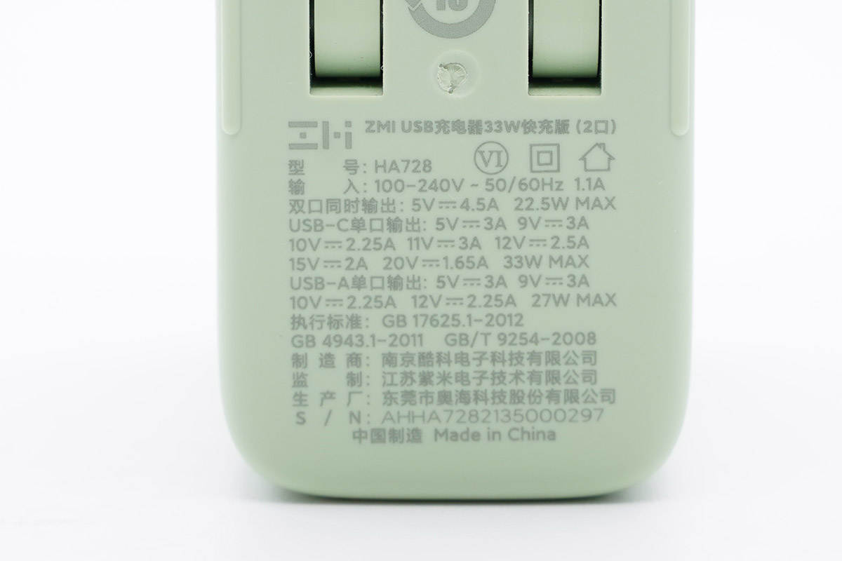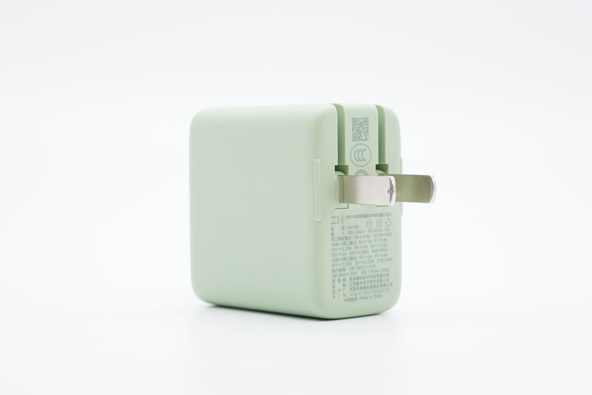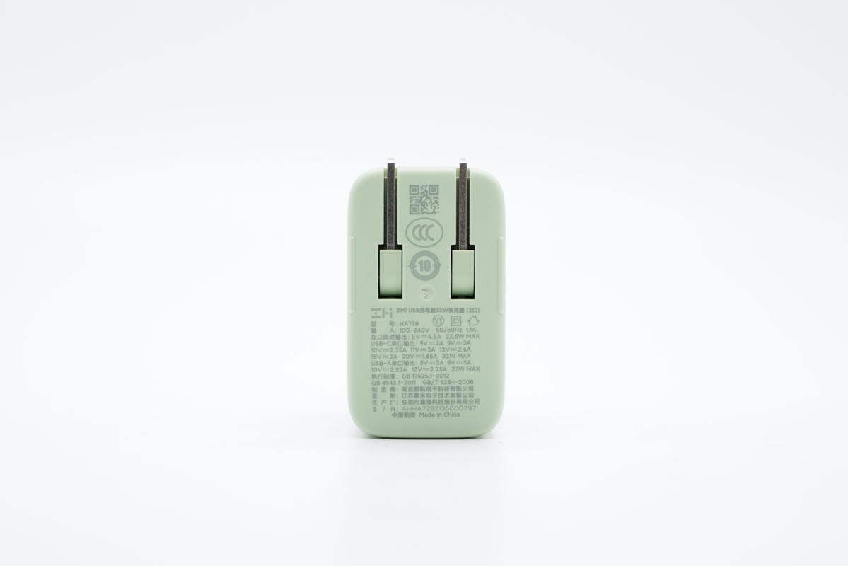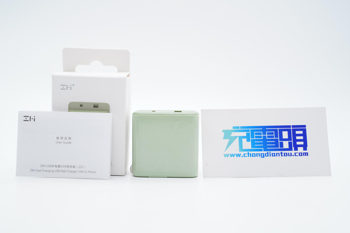 充電頭網拿到了紫米最新推出的33W雙口充電器,這款充電器采用1A1C雙輸出口,綠色外殼,支持小米33W和22.5W私有快充協議,對小米手機快充的支持非常好。