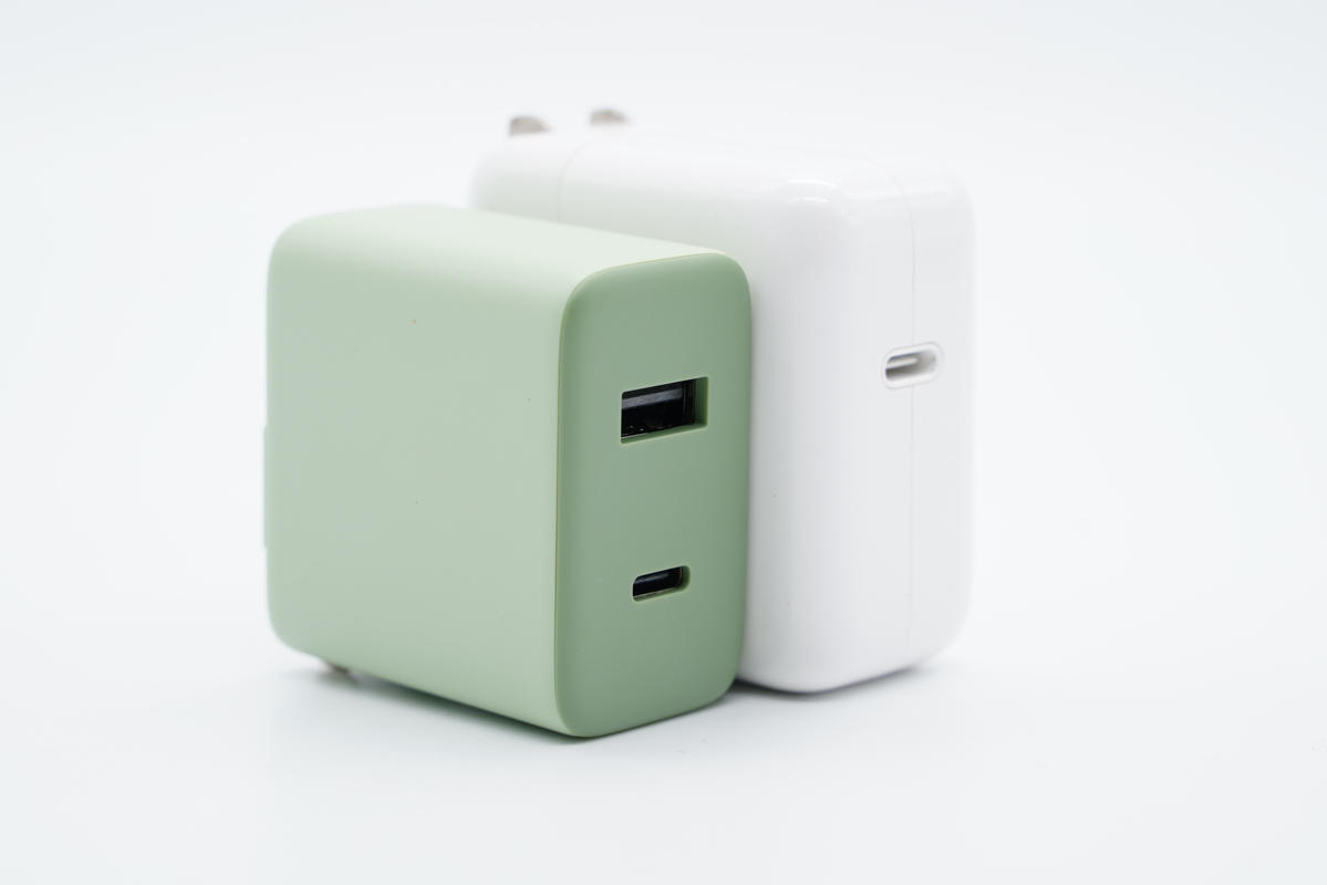 和蘋果30W充電器直觀對比,體積、接口數量都有優勢。
