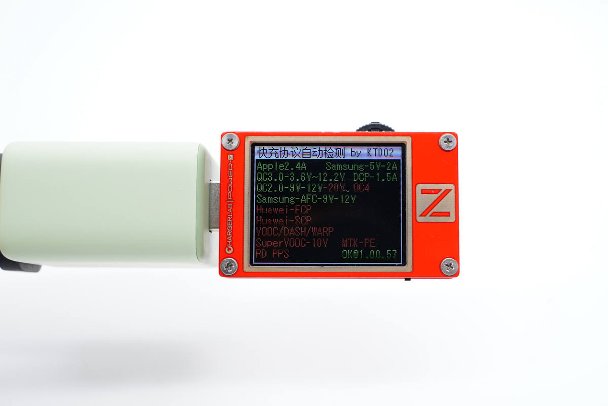 使用ChargerLAB POWER-Z KT002測得USB-C口支持Apple 2.4A、Samsung 5V2A、DCP協議,以及QC2.0/3.0、AFC、FCP、PD3.0、PPS多個快充協議。