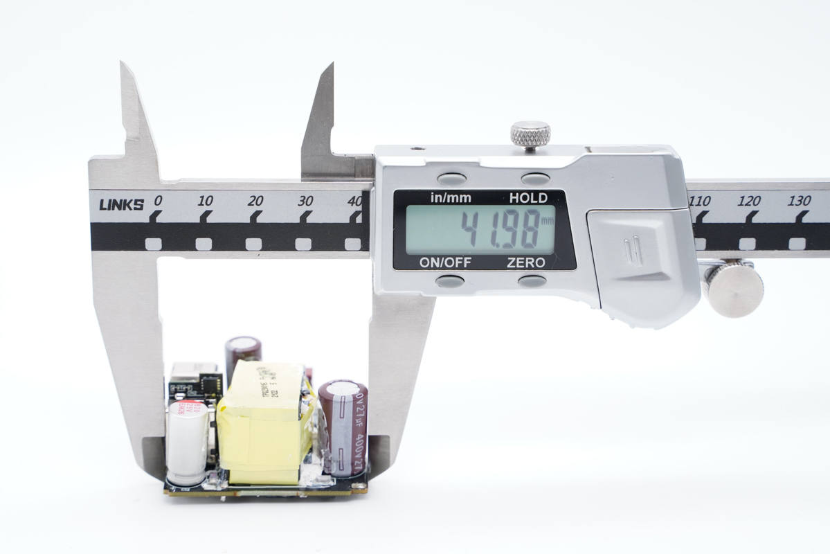 使用游標卡尺測得PCB板模塊長度為41.98mm。