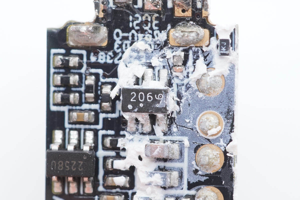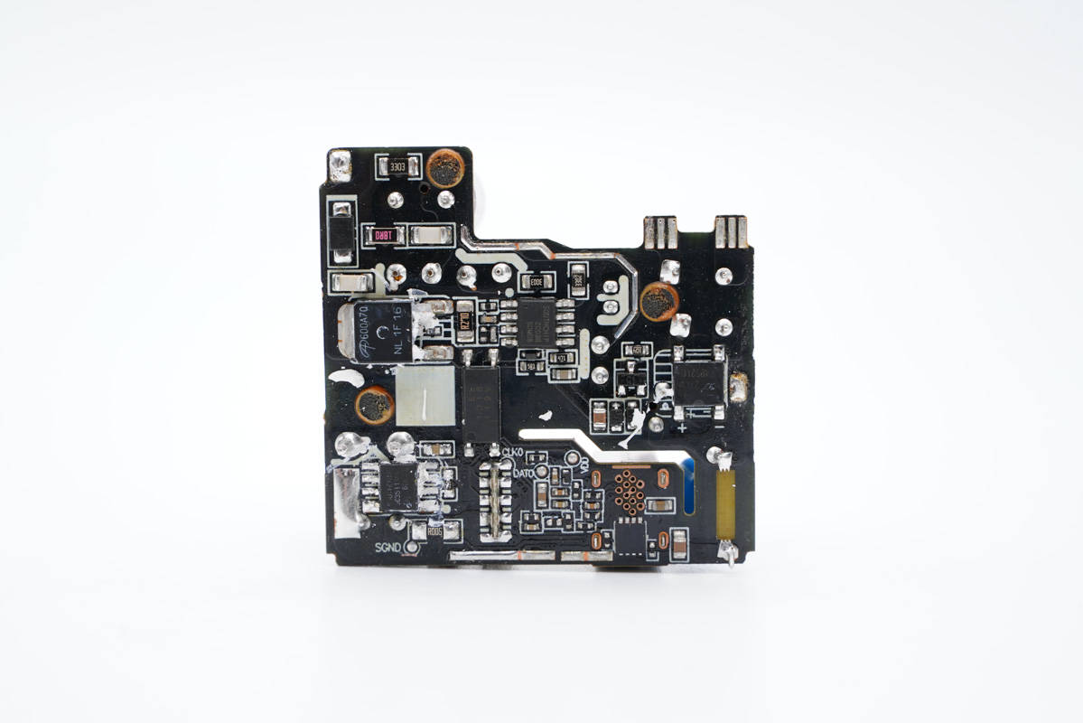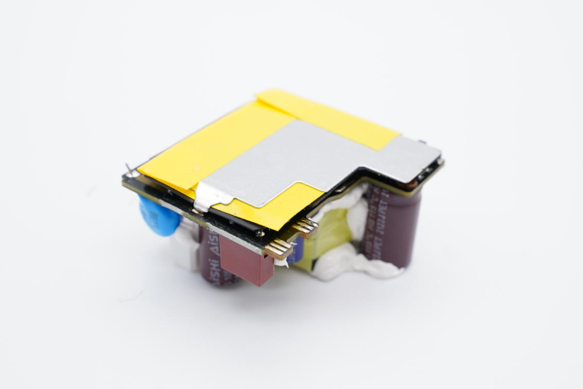 充電器電路板背面有散熱鋁片,通過絕緣隔離板與電路板絕緣。