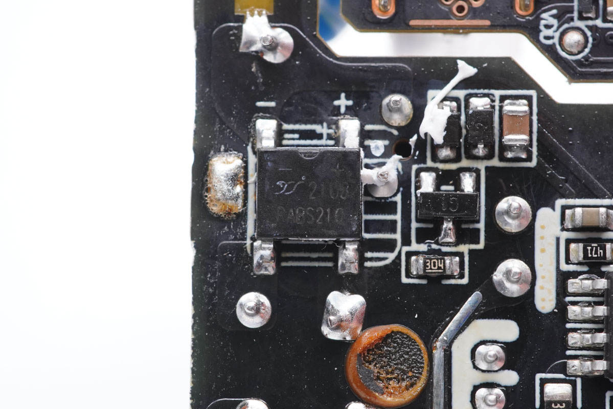 整流橋特寫,揚杰RABS210,2A電流,耐壓1000V。