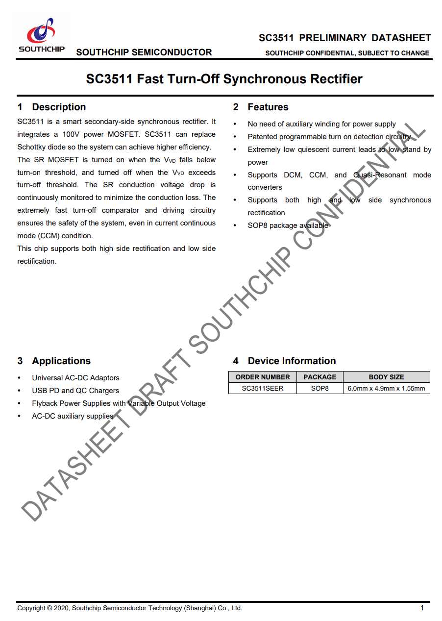 南芯 SC3511 詳細資料。