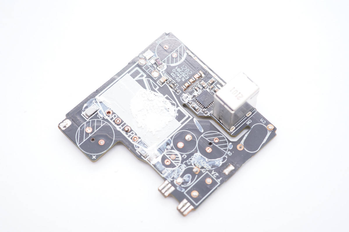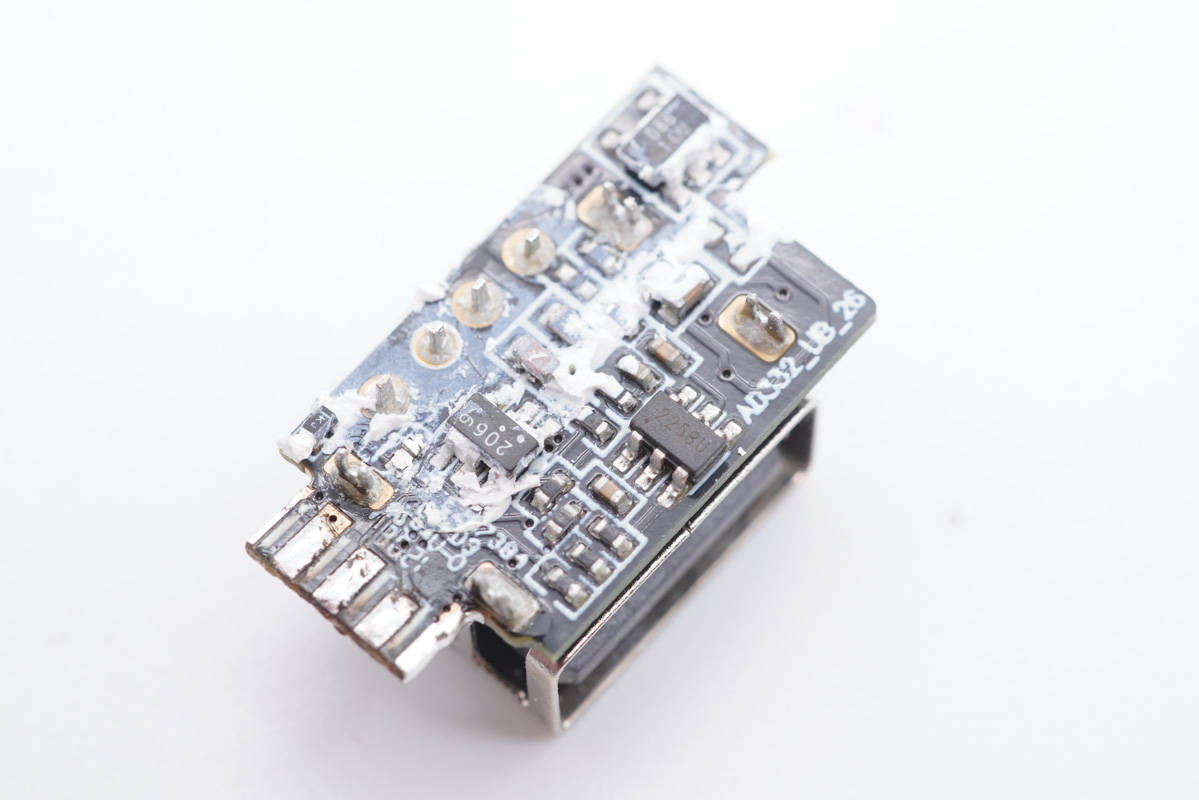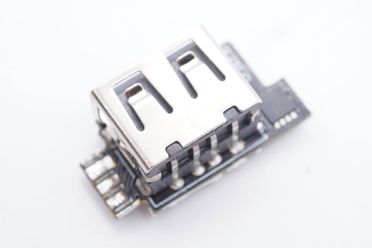 USB-A母座焊接在小板上,協議芯片在兩個接口之間。