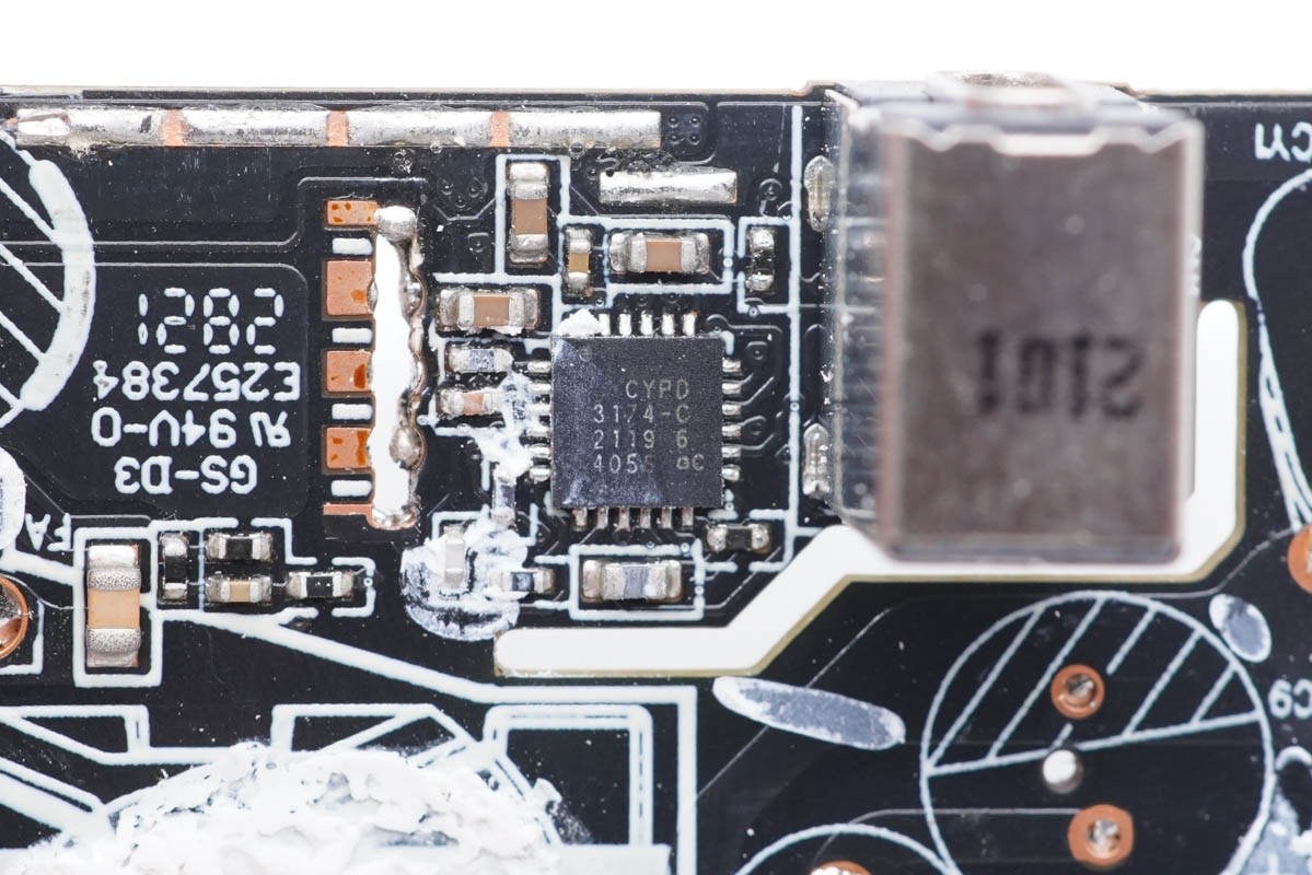 USB PD快充協議芯片采用英飛凌CYPD3174,該芯片支持PD3.0包括PPS協議,支持QC4.0,蘋果2.4A等其他快充協議;內置多重全面的保護功能,內置32位 M0處理器,集成振蕩器且無需外部時鐘。
