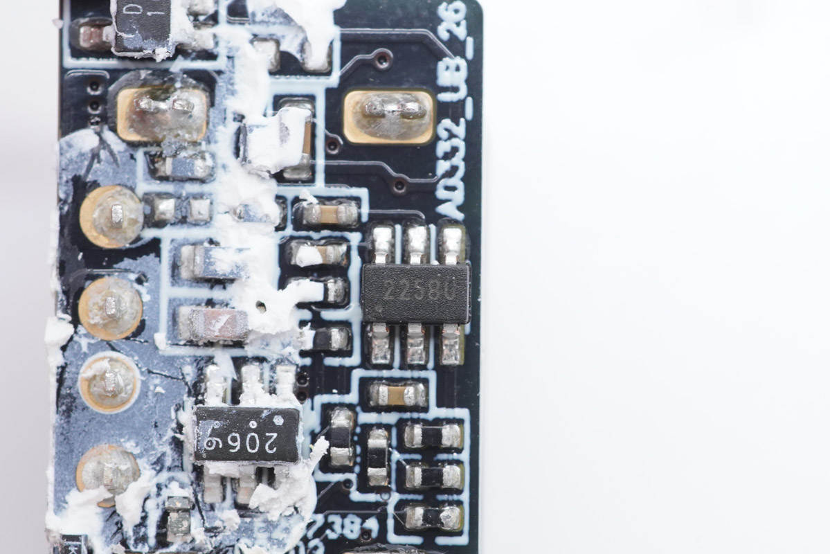 絲印2258U的紫米定制芯片,資料不詳,用于雙口快充控制功能。