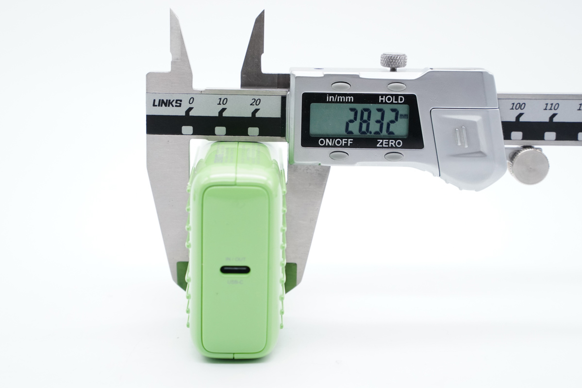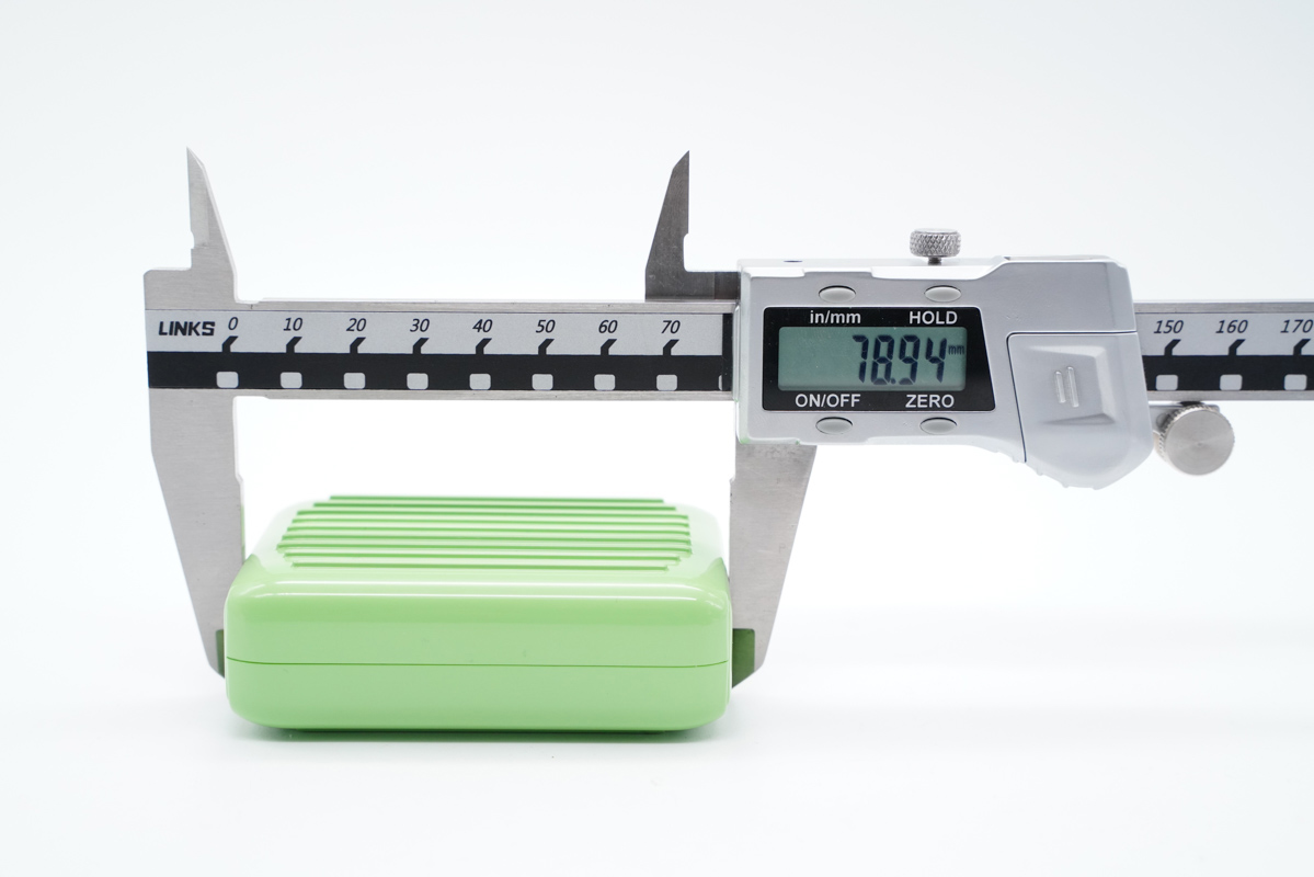 使用卡尺測量 Zendure 征拓 Supermini Lightning 充電寶長度約78.94MM。