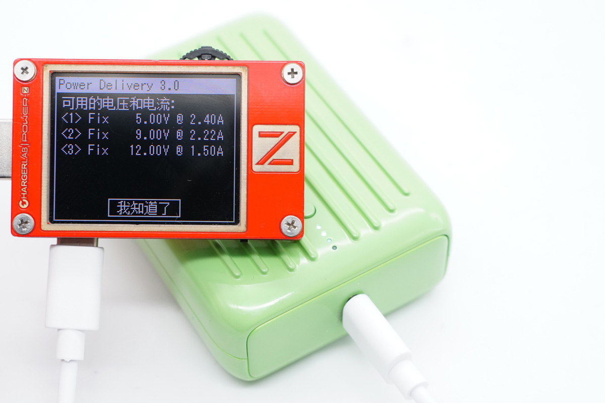 使用POWER-Z KT002讀取USB-C的快充協議,實測支持PD、Apple2.4A、QC2.0、QC3.0等快充協議。