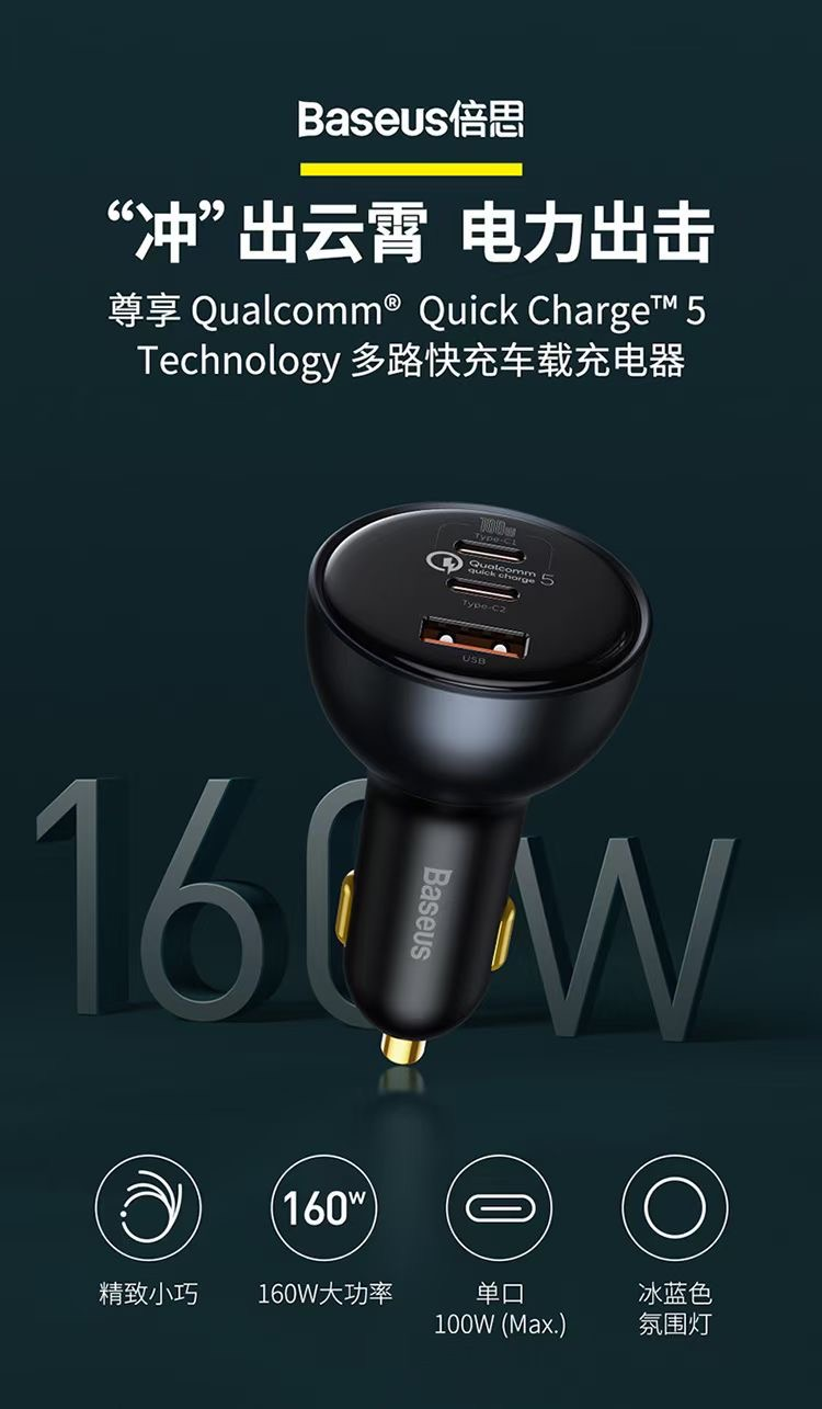 此前Baseus倍思推出過45W級、65W級和100W級兩款1A1C雙口快充車充,是目前市面上為數不多能夠滿足筆電車上快充的大功率車充,滿足消費者對大功率車充的需求。而倍思并未因此停下腳步,沒過多久又推出了一款160W功率的超級快充車充,本次要拆解的就是這款產品。