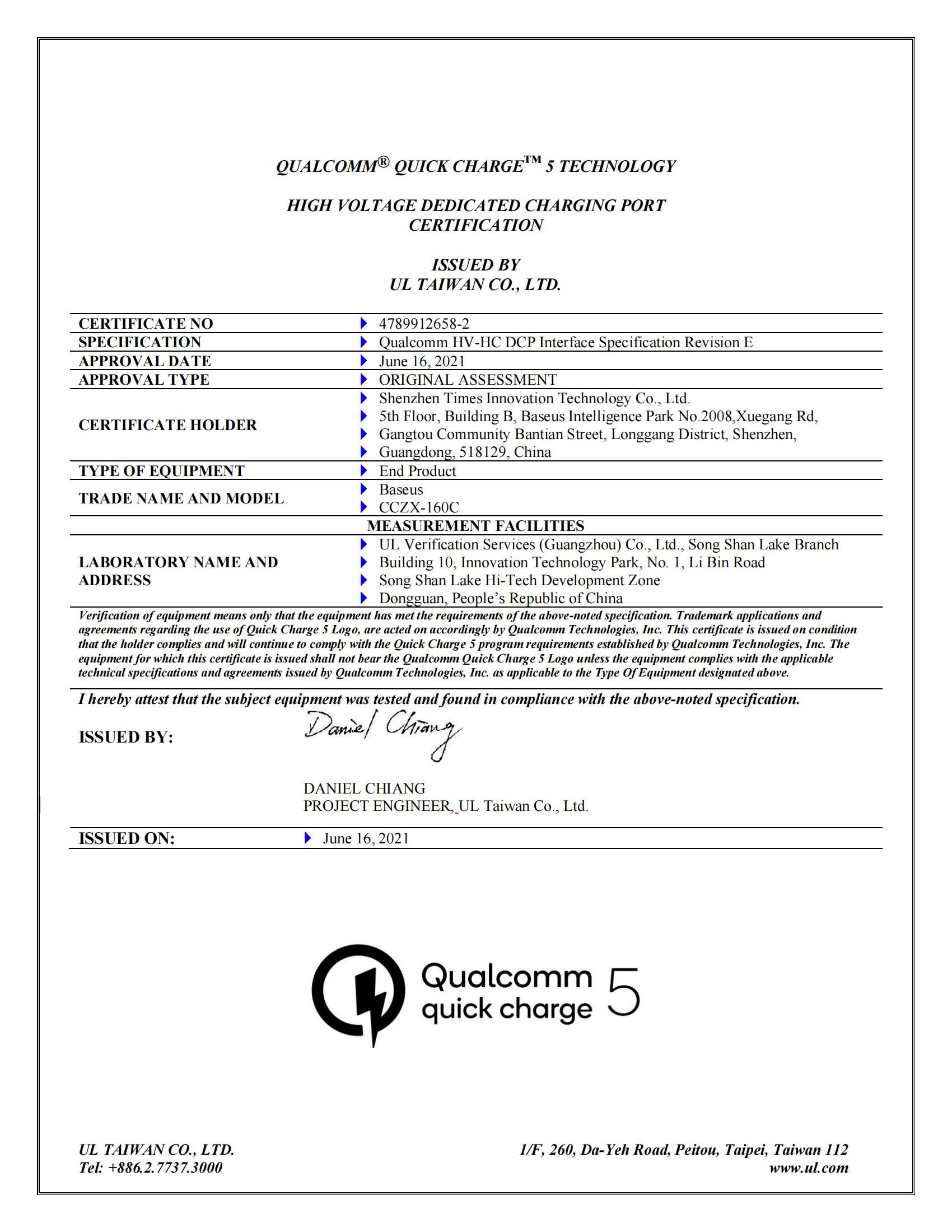 不僅如此,和倍思新款100W氮化鎵快充一樣,這款車充也是全球首款通過高通QC5認證的車充,證書編號4789912658-2。在高通最新的QC5快速充電標準加持下,可以給用戶更快、更強、更好用的充電體驗。下面我們就一起來看看這款車充具體是如何設計的。