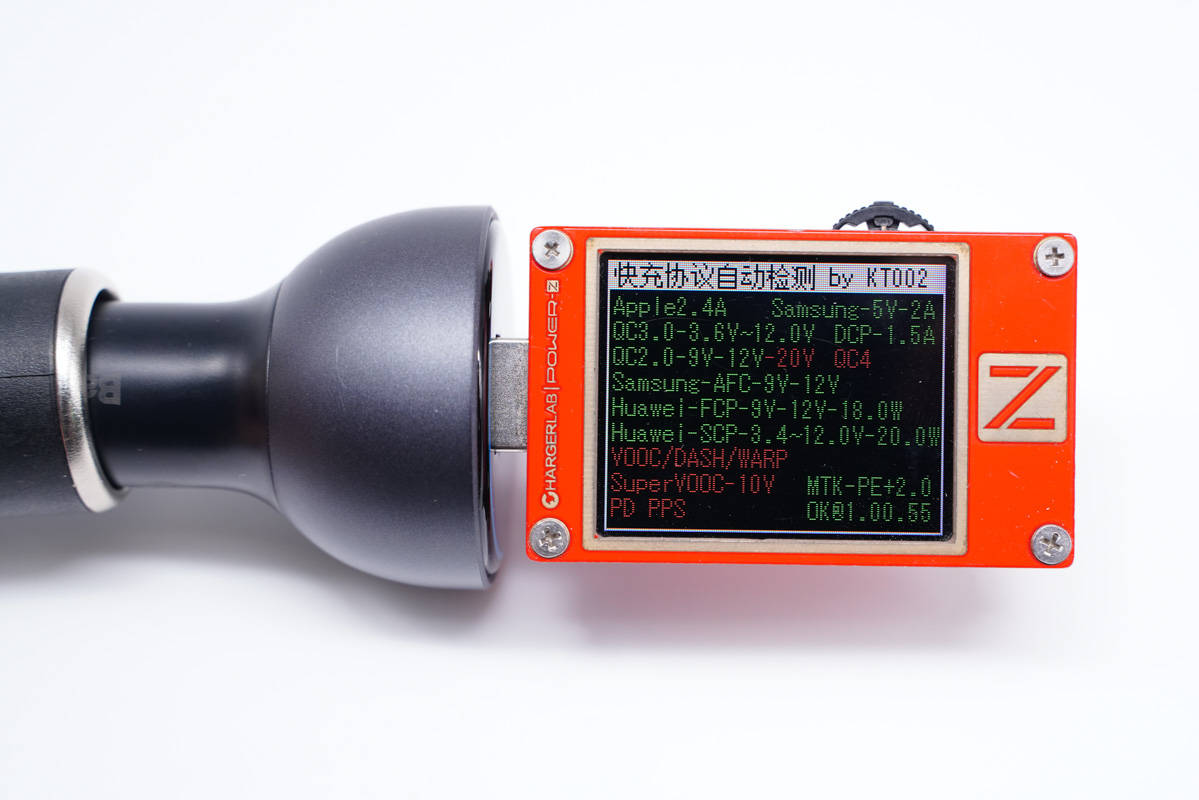 使用KT002測得C2口支持Apple 2.4A、Samsung 5V2A、DCP協議,以及QC2.0/3.0、AFC、FCP、PD3.0、PPS快充協議。