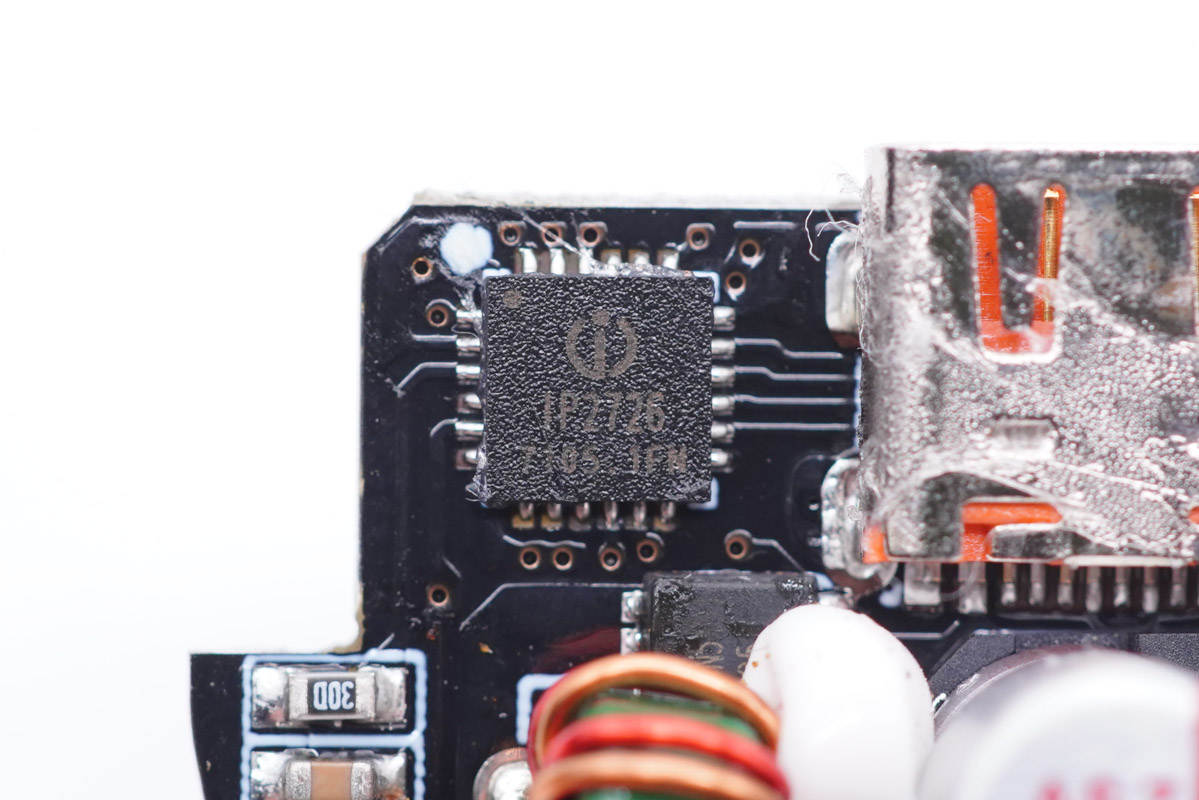 C1口協議芯片采用英集芯IP2726S,該芯片拿到了高通全球首張QC5認證證書,證書編號:QC20200812181。IP2726S為最新的快充技術而設計,最高支持到100W+,同時具有極高的可靠性,可以在極為嚴苛的高溫環境下穩定工作,為高功率密度電源設計提供助力。