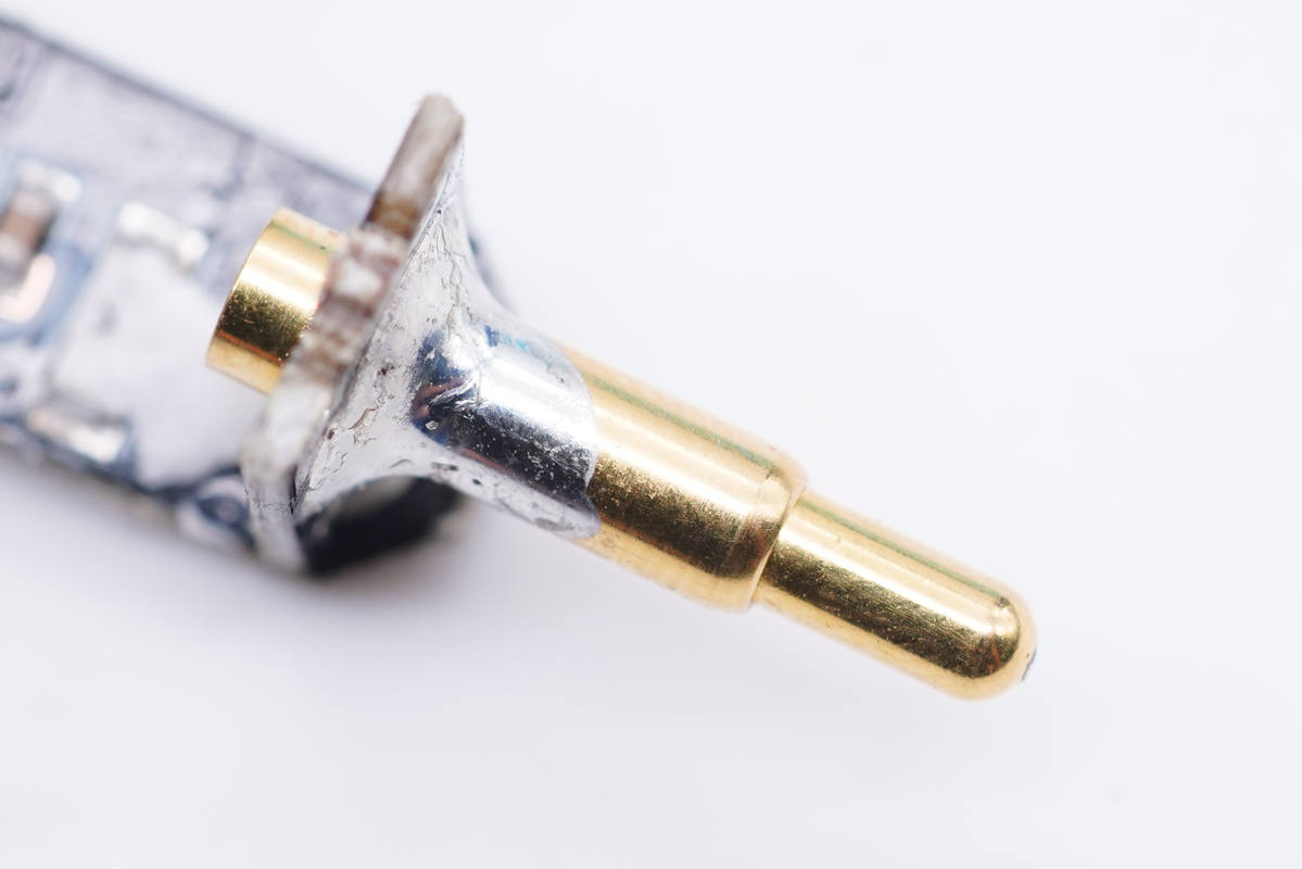 輸入端正極金屬頂針過孔焊接。