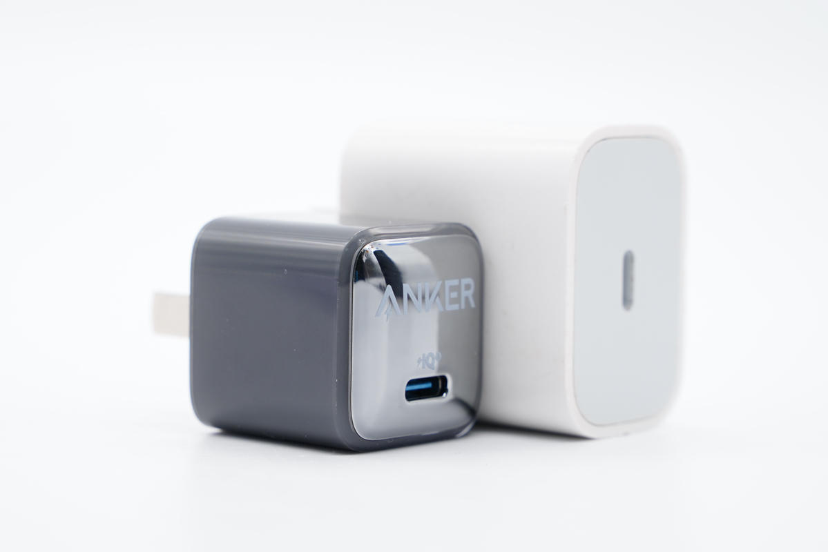 和蘋果 20W 充電器直觀對比,體積約為蘋果原裝的45%,更小也更漂亮。