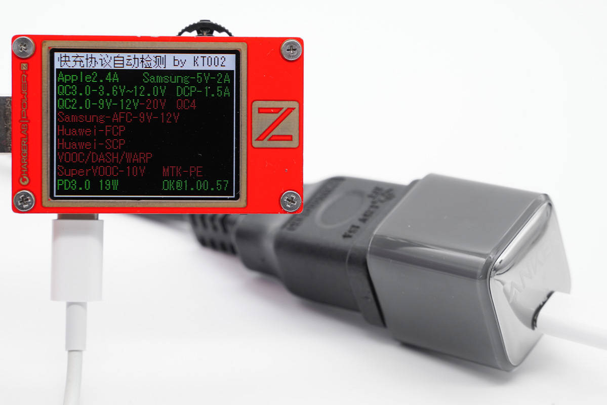 使用ChargerLAB POWER-Z KT002測得USB-C口支持Apple 2.4A、Samsung 5V2A和DCP協議,以及QC2.0、QC3.0、PD3.0快充協議。