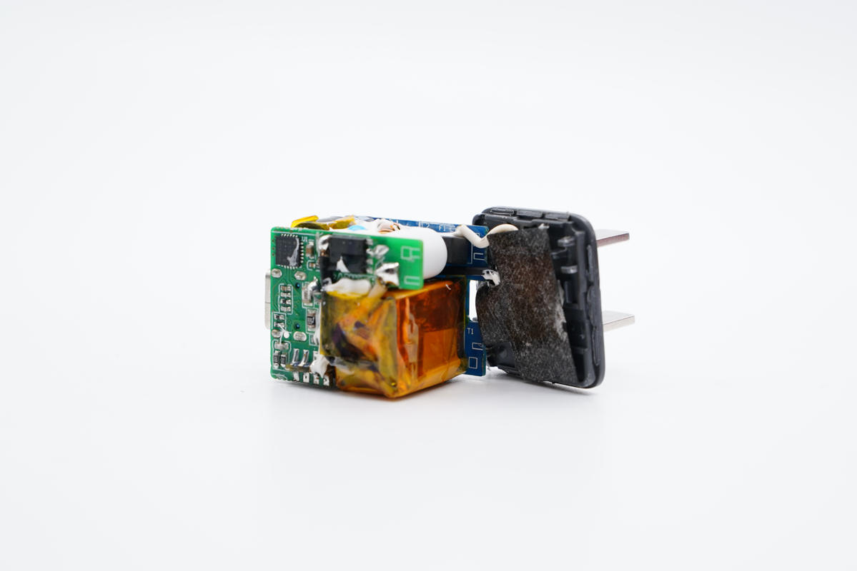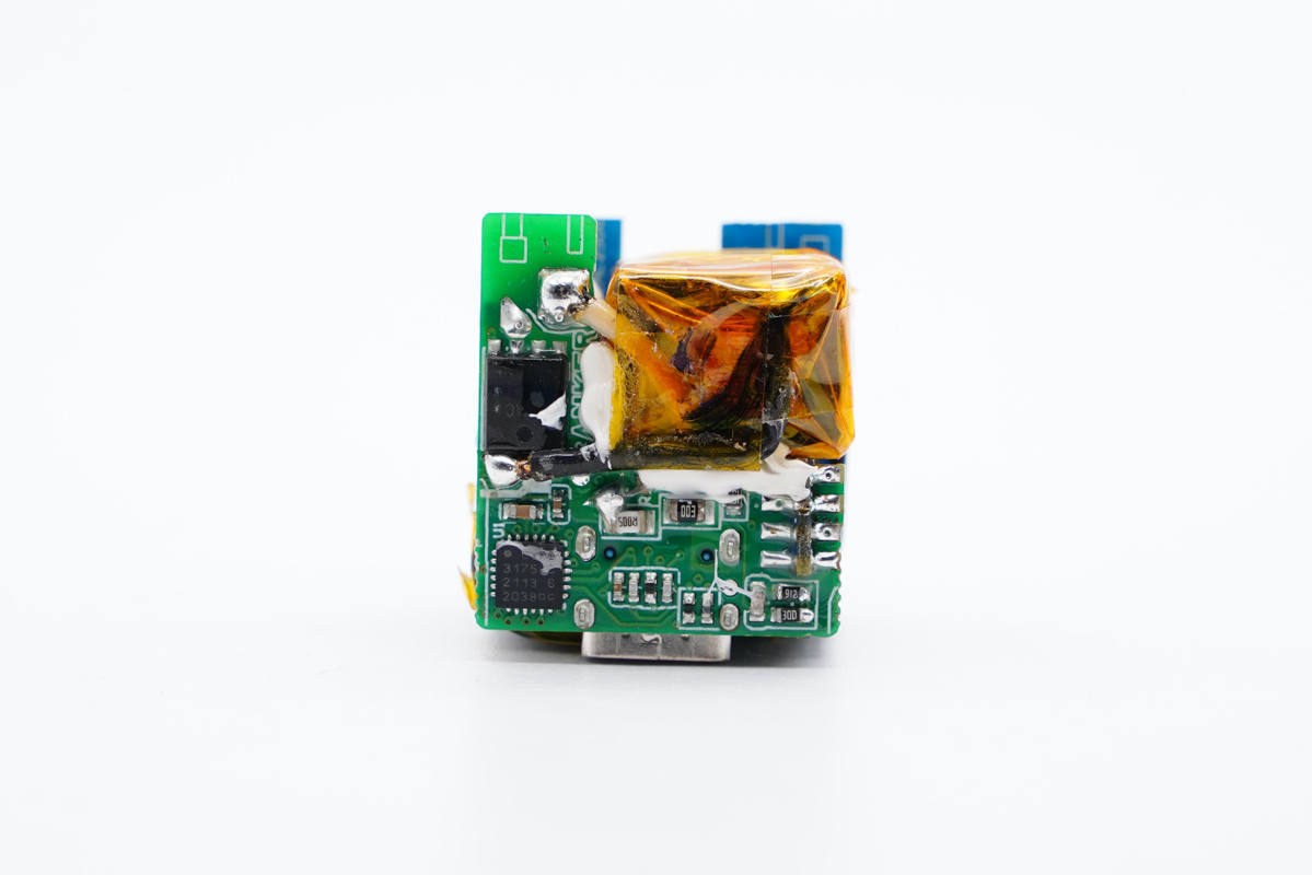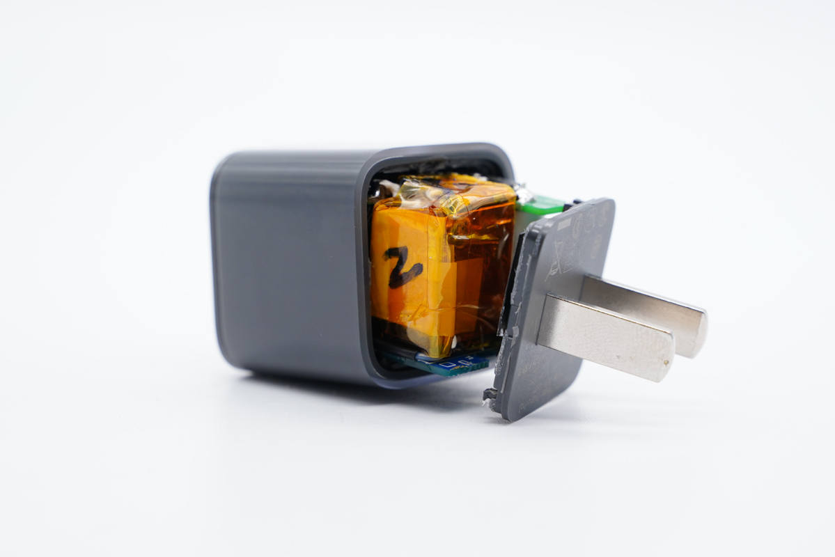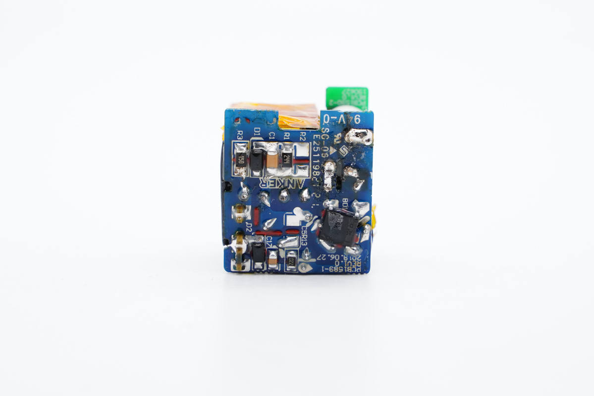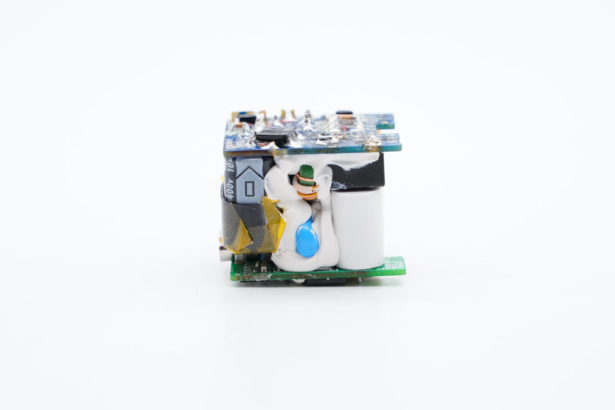 模塊采用的是時下熱門的三塊小板組合焊接設計,U型結構,夾層間放置電容、變壓器等器件,最大化利用內部空間,讓安克這款安芯充體積達到迷你級別。
