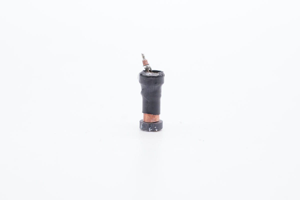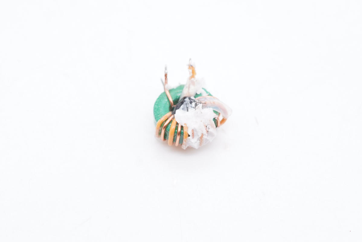 變壓器特寫,使用高溫膠帶嚴密包裹,一側噴碼有信息。