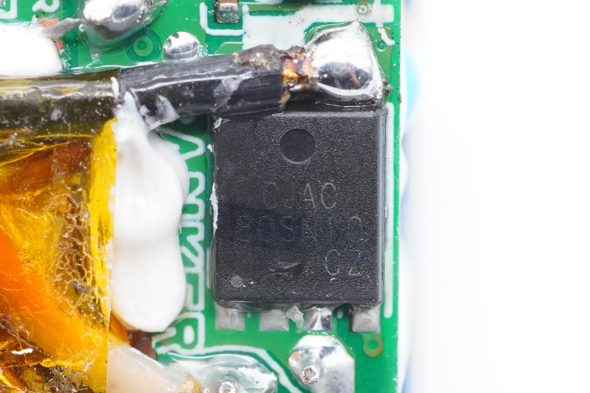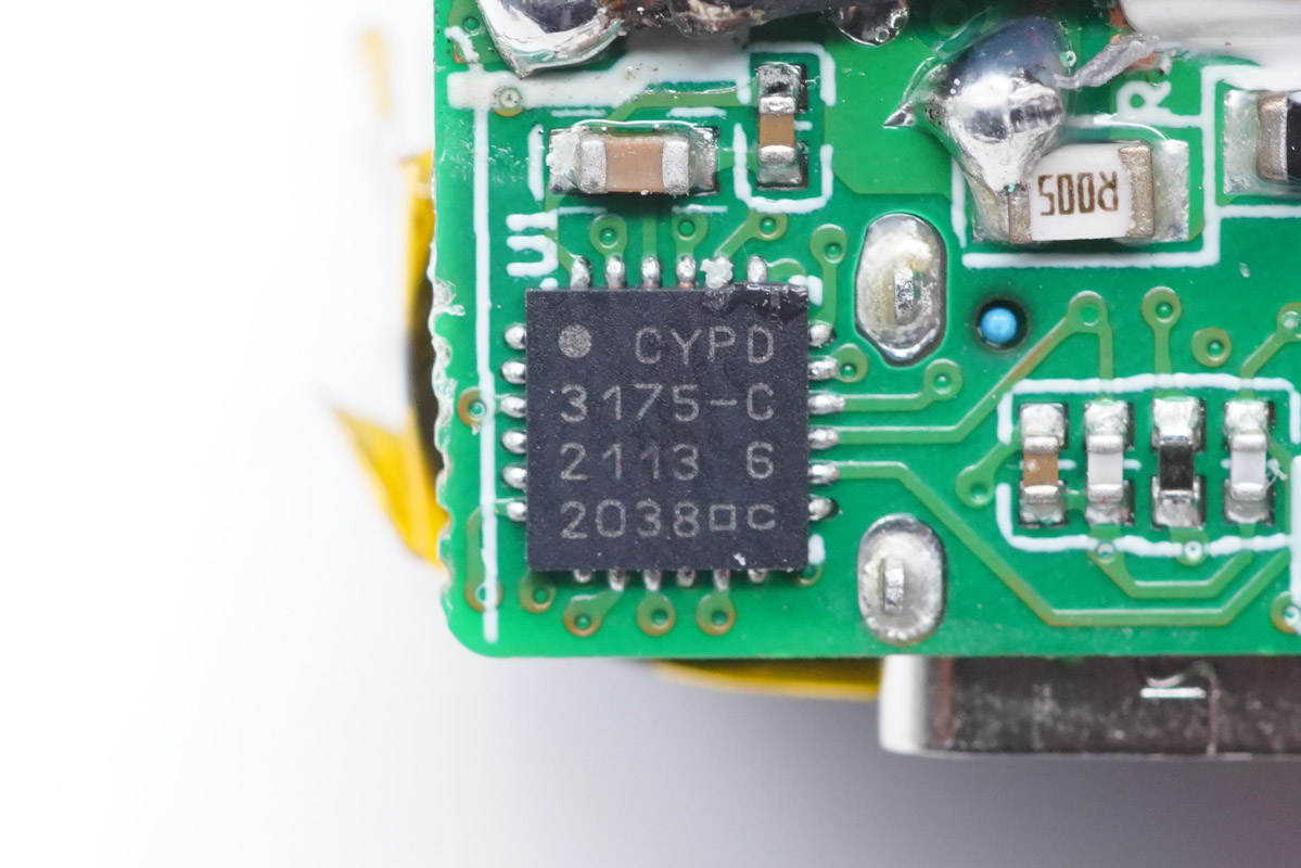 英飛凌CYPD3175-24LQXQ還是一顆集成度很高的獨立AI控溫芯片,其左側設有一顆熱敏電阻,由英飛凌的協議芯片全程實現溫度檢測到干預充電輸出,保證充電更加穩定安全。