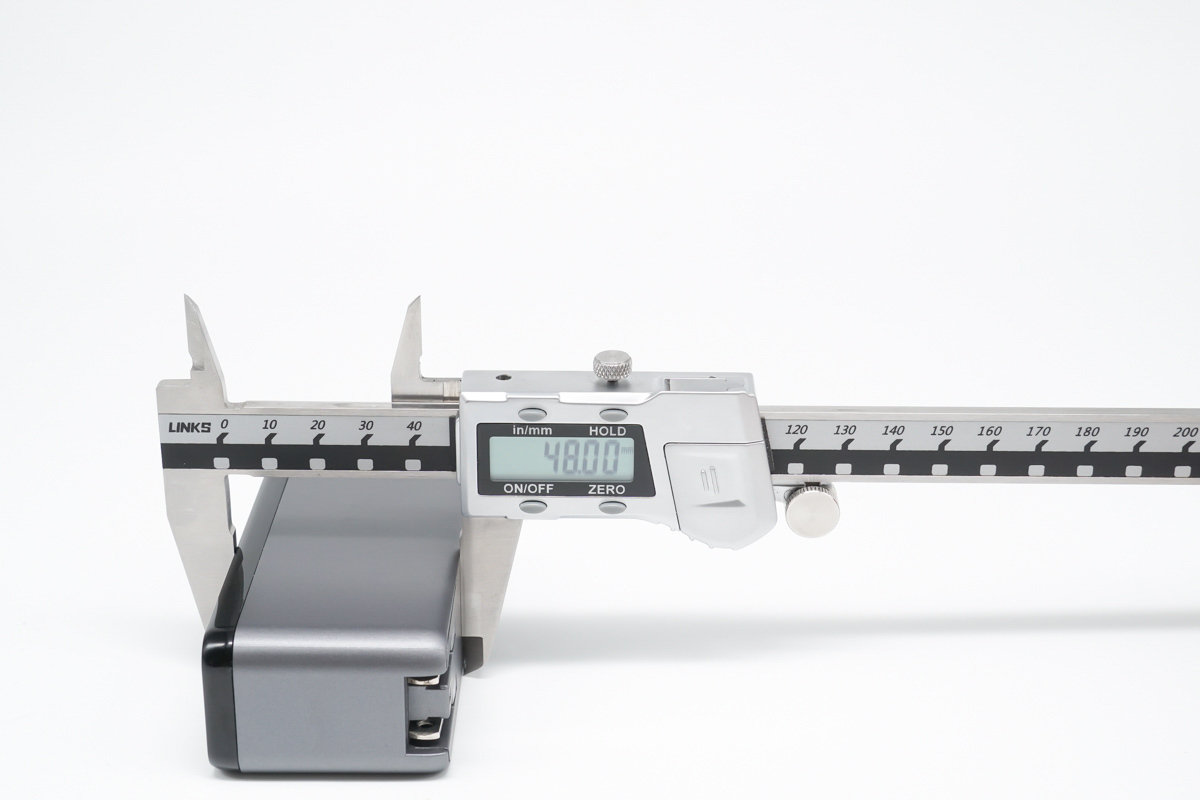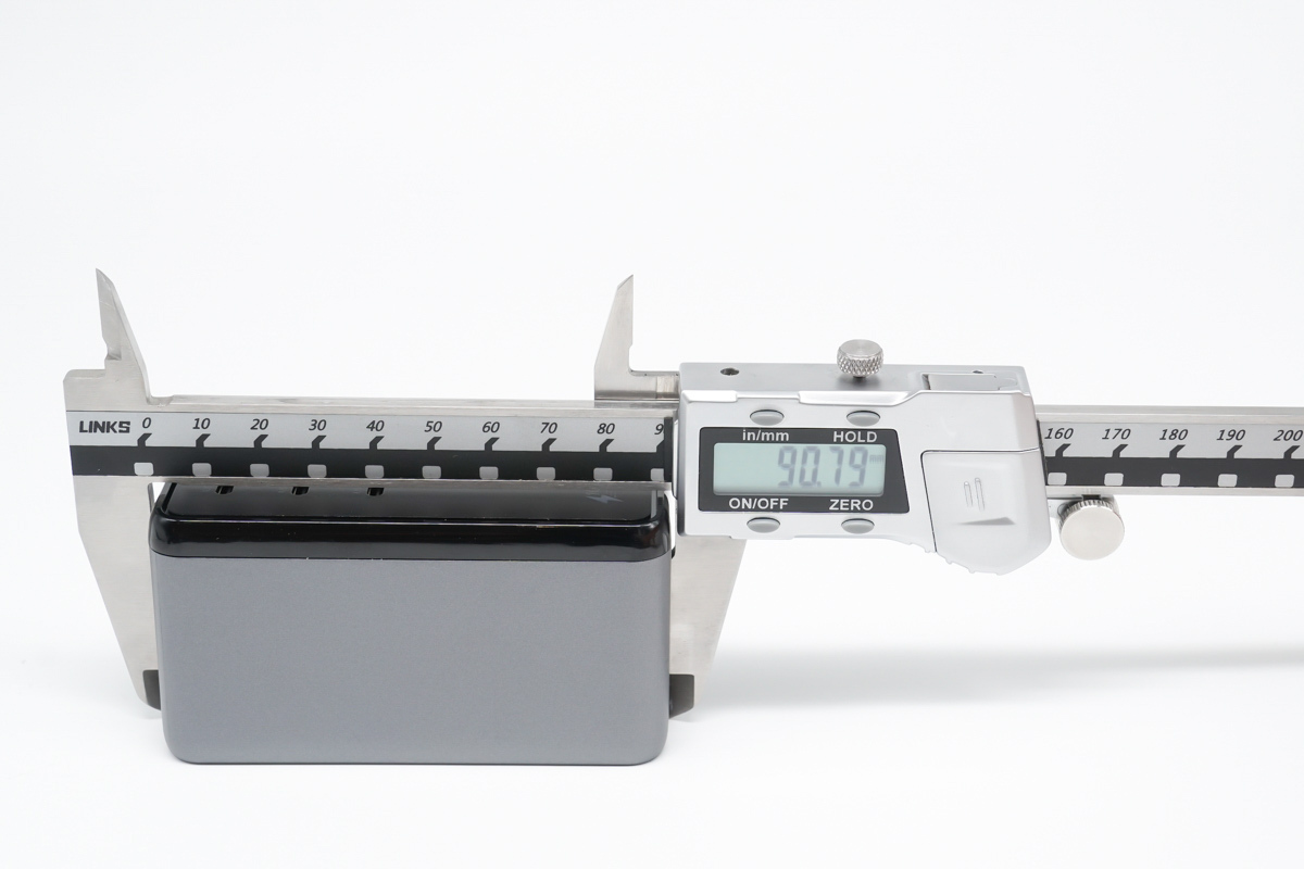 尺寸方面使用卡尺實測充電器的長度約為90.79mm。