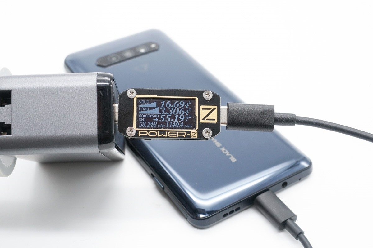 下面進入實測環節,為黑鯊4 Pro充電功率為16.69V 3.3A 55.19W。
