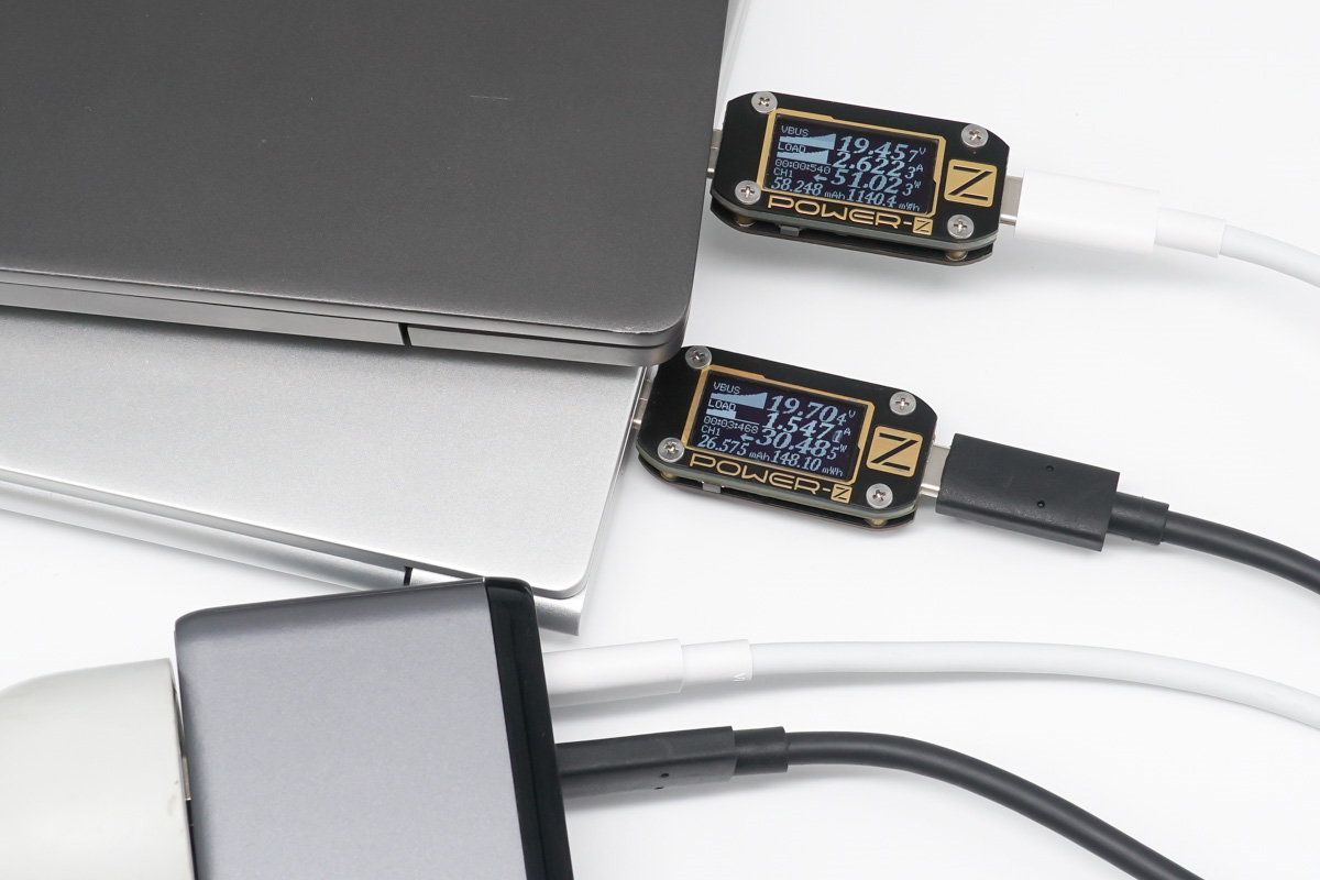 多口同時輸出這里,為2臺筆記本充電功率分別為51.02W和30.48W。