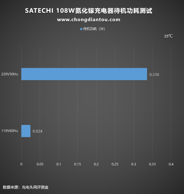 充電器如果經常插在插座上不使用也是會耗電的,只不過非常小而已。經過功率計測試,SATECHI 108W氮化鎵充電器在220V 50Hz的空載功耗為0.336W,換算下來一年損耗的電能約為2.94KW·h,若市價電為0.6元/KW·h,則充電器一年的電費約為1.76元左右。