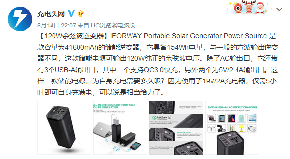 近期,知名數碼博主充電頭網爆料,美亞有上架一款新的便攜式儲能電源——iFORWAY Portable Solar Generator Power Source。