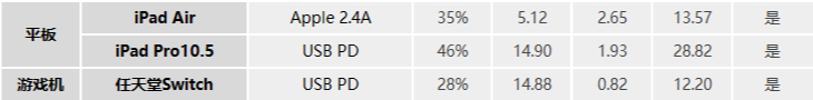 對于iPad Air老款平板可以5V/2.6A充電,而對于支持USB PD的iPad Pro10.5‘平板可以15V約30W充電,對于任天堂switch也能15V快充。