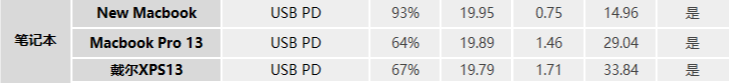 給支持USB PD的New MacBook、MacBook Pro以及Dell XPS13,均能以15V進行快充,充戴爾XPS13時功率最大達到33.8W。