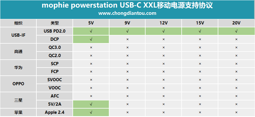 欣賞完mophie powerstation USB-C XXL移動電源的外觀后,接下來我們來看看它的性能如何。小編會依次從協議檢測、兼容性、最大輸出、滿載溫度、充電測試這五方面進行,隨我一起來看看吧。