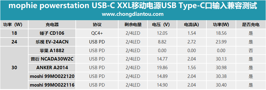 接下來是移動電源對于充電器的兼容測試。
