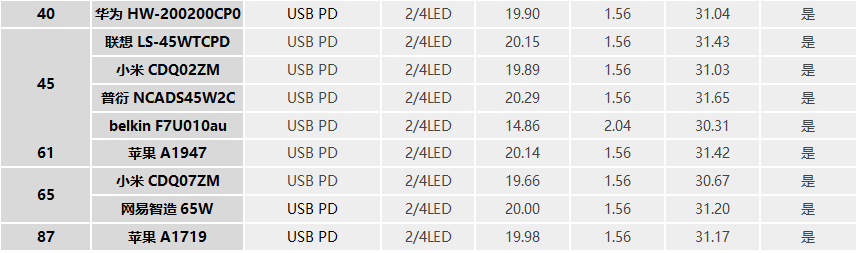 從圖表中可以看出,所有手機均可正常充電,對于擁有USB PD快充的手機,都成功握手USB PD協議,兼容性良好。其中,魅族PRO6 Plus的功率更是達到了21W。