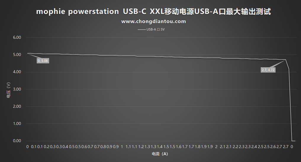 接著是USB-A口,最大輸出2.7A,比標稱值大了0.3A。