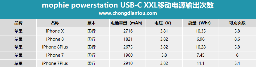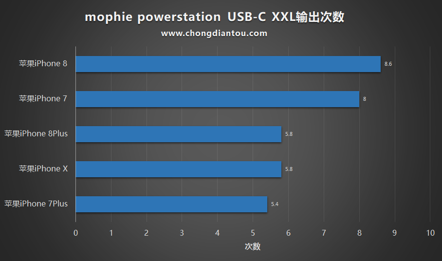 其中,能給iPhone 8充最多次,為8.6次;iPhone 7Plus最少,為5.4次。(數據僅作參考)