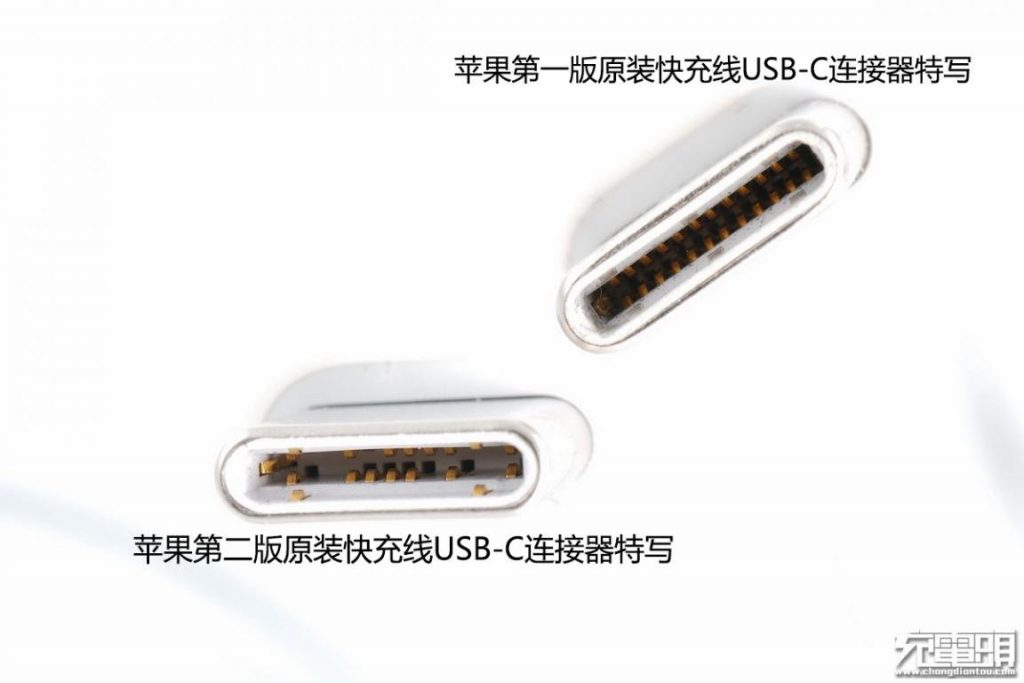 蘋果兩代快充線USB-C接口特寫