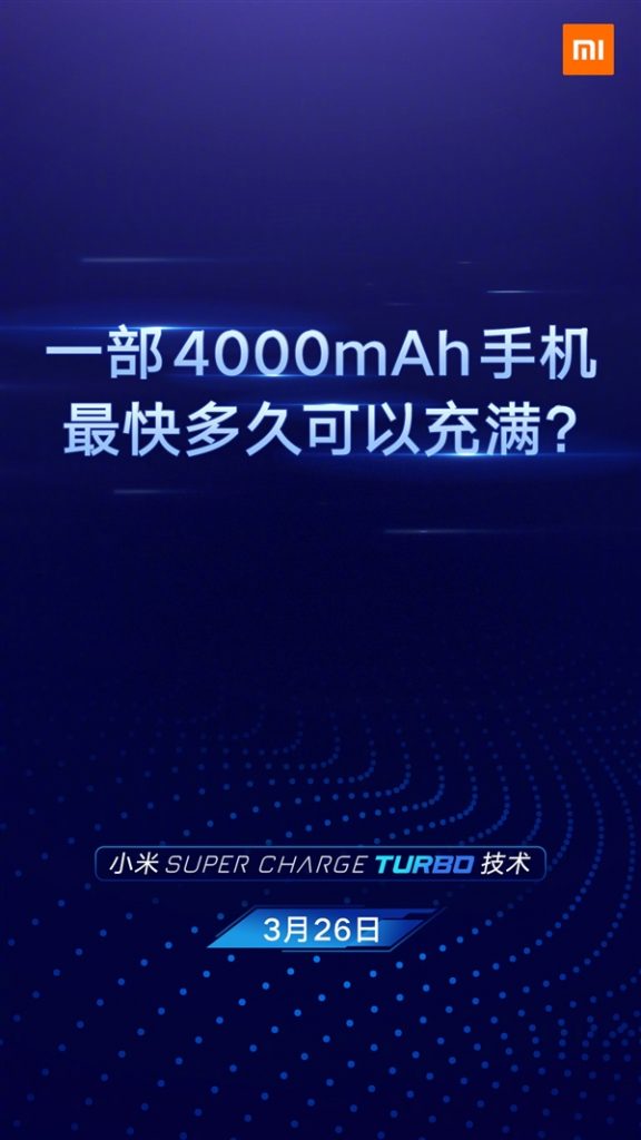 今晚(3月25日),小米手機宣布將在明天揭曉一項名為“小米Super Charge Turbo”的技術,似乎要打破4000mAh手機電池的充電速度紀錄。
