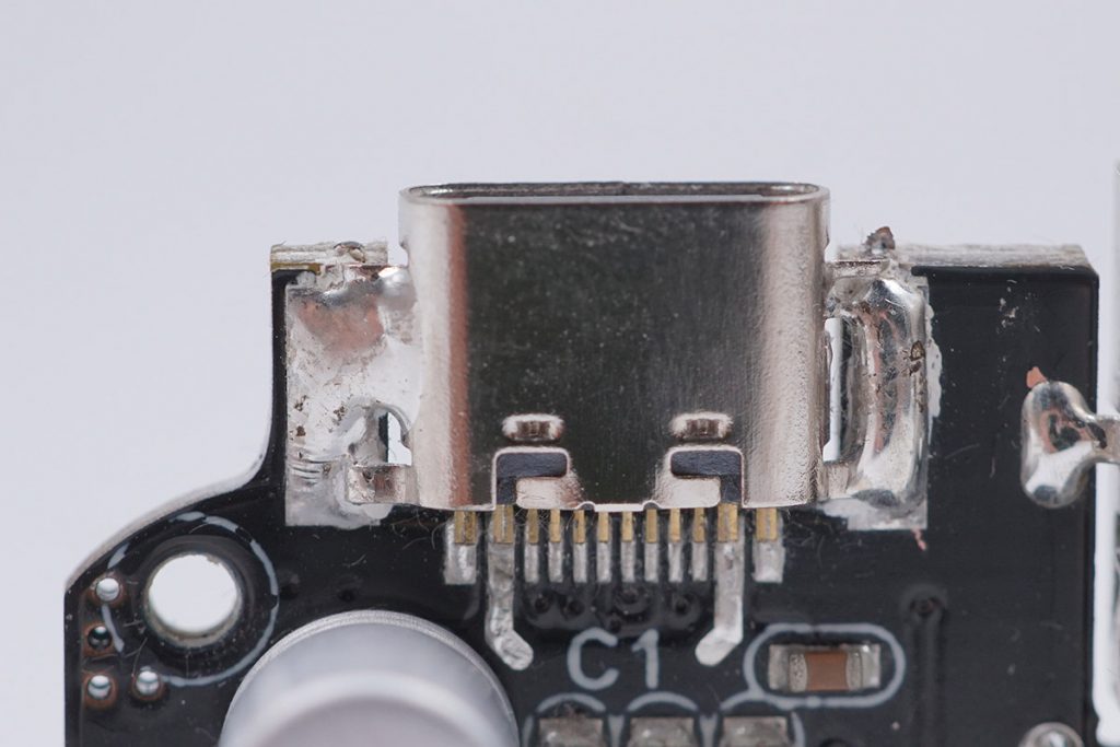 為了提高接口插拔的耐用性,在USB Type-C母座兩側(cè),加入了二次點(diǎn)焊加以固定。