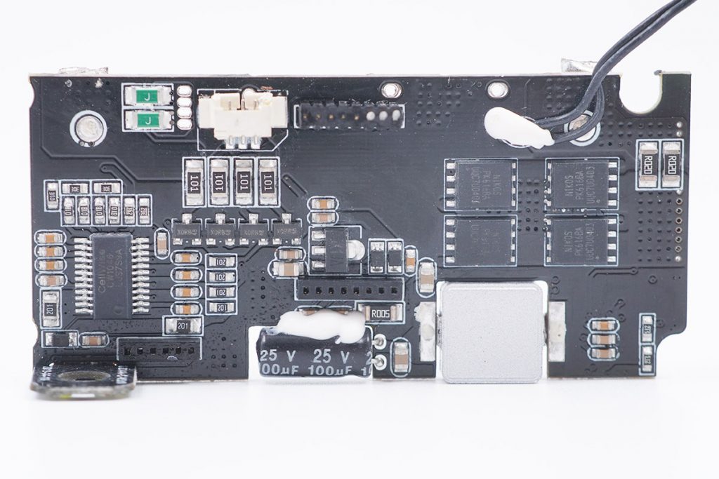 取出PCB與電池組,可以看到一共采用了8節(jié)18650電芯組成。