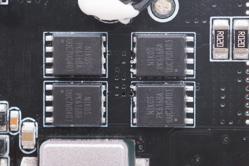 將前后兩塊PCB板分開,為了可以承受更大電流,以及進(jìn)一步增強(qiáng)本身的散熱表現(xiàn),左邊一塊PCB采用的是4層銅板2oz設(shè)計(jì),右邊的PCB則采用6層銅板2oz設(shè)計(jì),目前市面上其他同類產(chǎn)品大多為1oz銅。