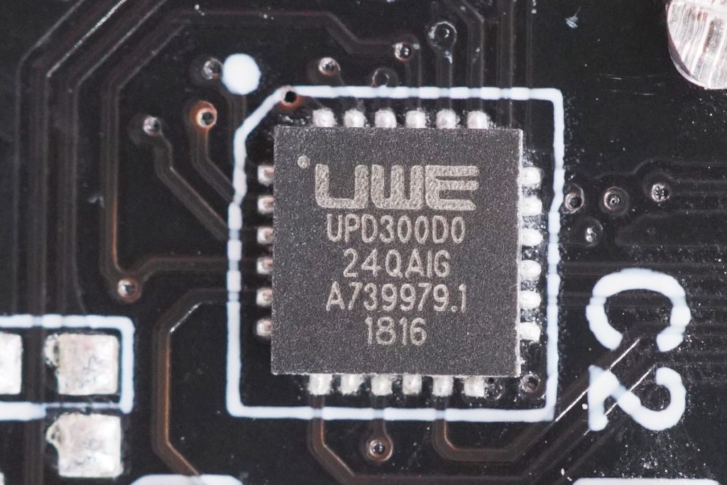 優(yōu)微科技UPD300DO-24QAIG,是一款USB Type-C接口控制器和PD控制器二合一的ASIC芯片。充電頭網(wǎng)經(jīng)查詢了解到,UPD300DO-24QAIG目前通過的是USB PD2.0認(rèn)證,并于2018年8月1日獲得了USB-IF協(xié)會(huì)的Test ID,編號(hào)為1000123。
