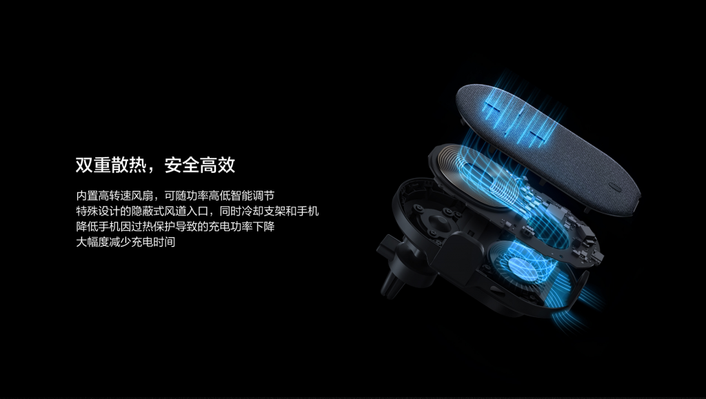 具備雙充散熱,安全高效。面板采用高透氣陽離子面料,能夠為手機散熱,并給愛機更貼心的保護。內置高轉速風扇,可隨功率高低智能調節(jié)。特殊設計的隱蔽式風道入口,同時冷卻支架和手機。降低手機因過熱導致的充電功率下降,大幅度減少充電時間。