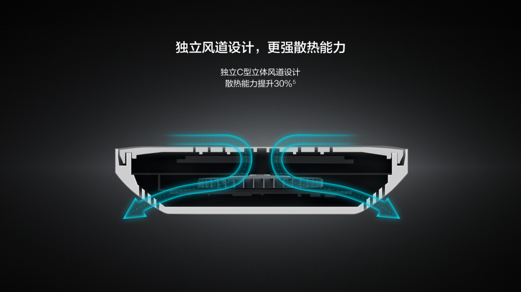 獨立C型立體風道設計,具備更強散熱能力,散熱能力提升30%。